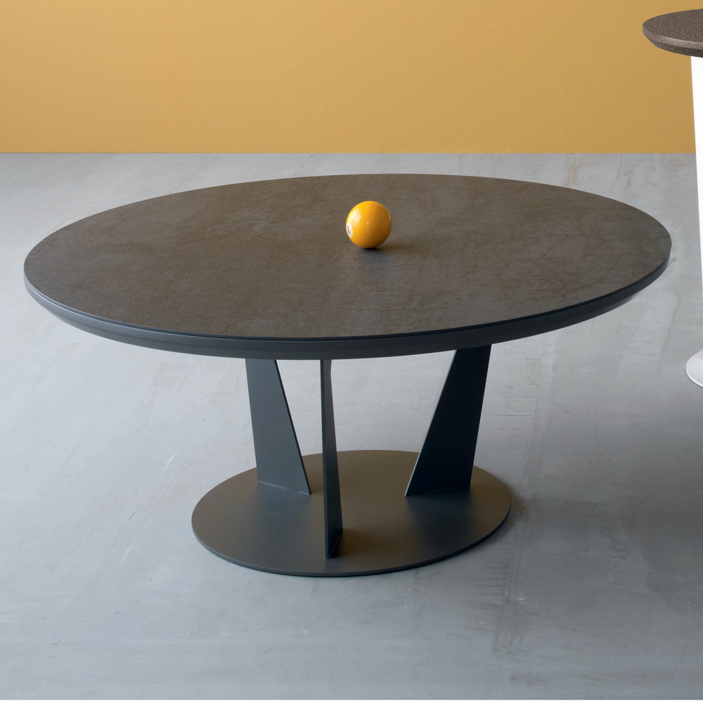 Ronde salontafel in schuin metaal en keramisch blad, 3 maten gemaakt in Italië.