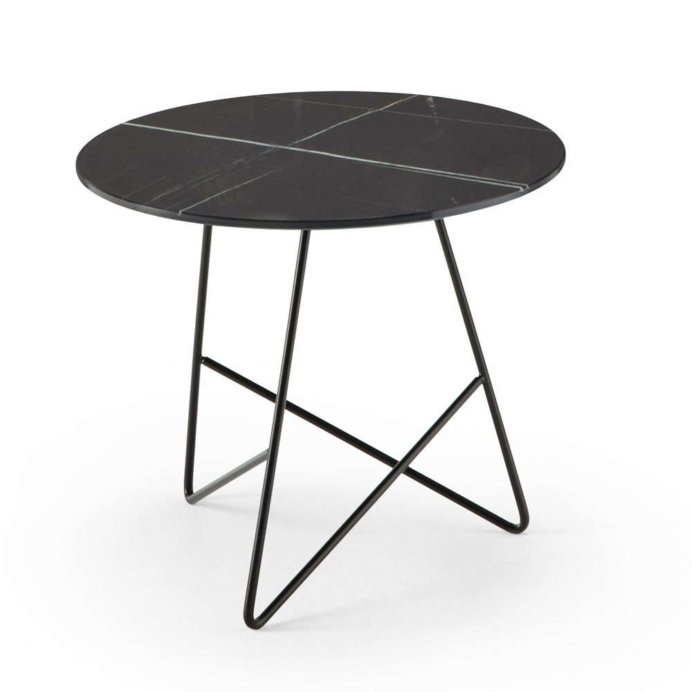 essentieel en modern rond ontwerp , met een lichte maar solide structuur, die het royale blad ondersteunt.