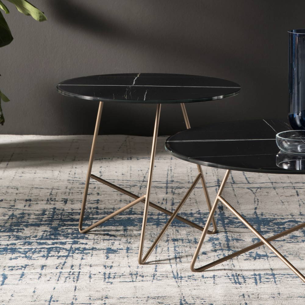 Ronde salontafel van metaal en glas-marmer, luxe artikel gemaakt in Italië.