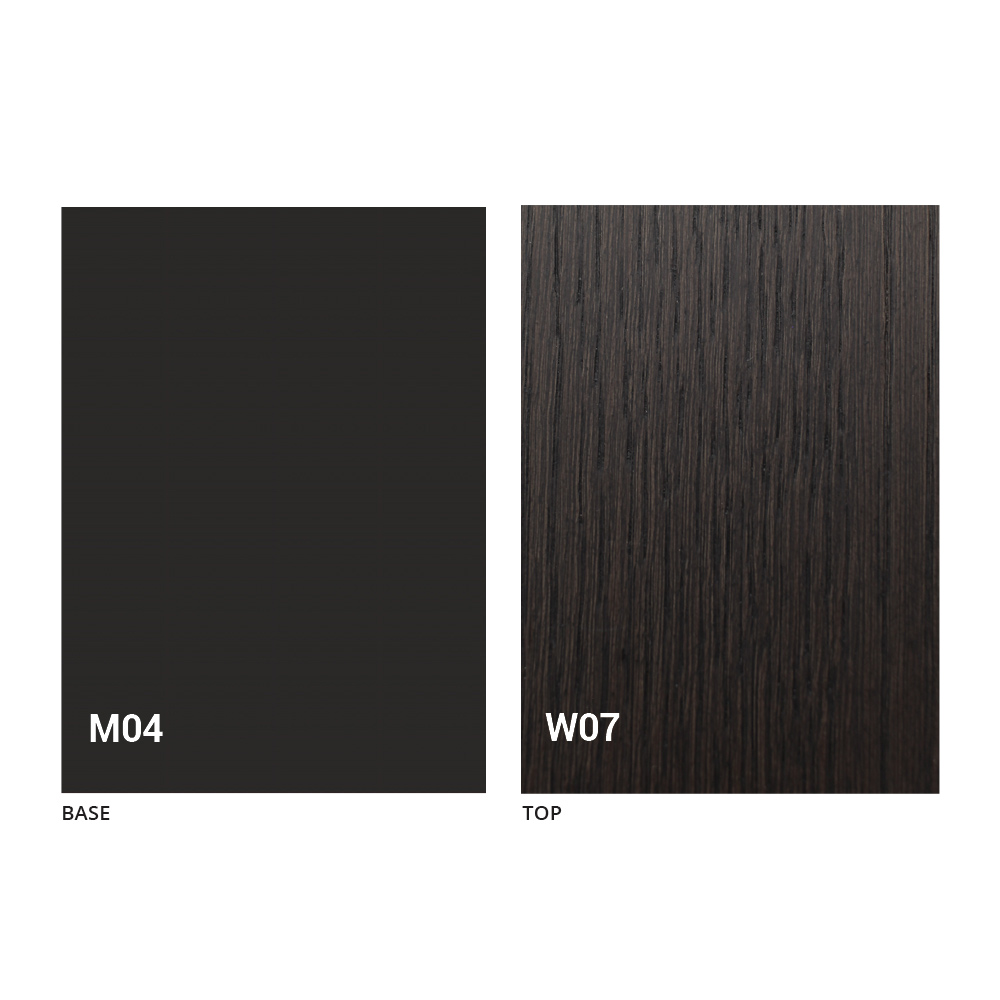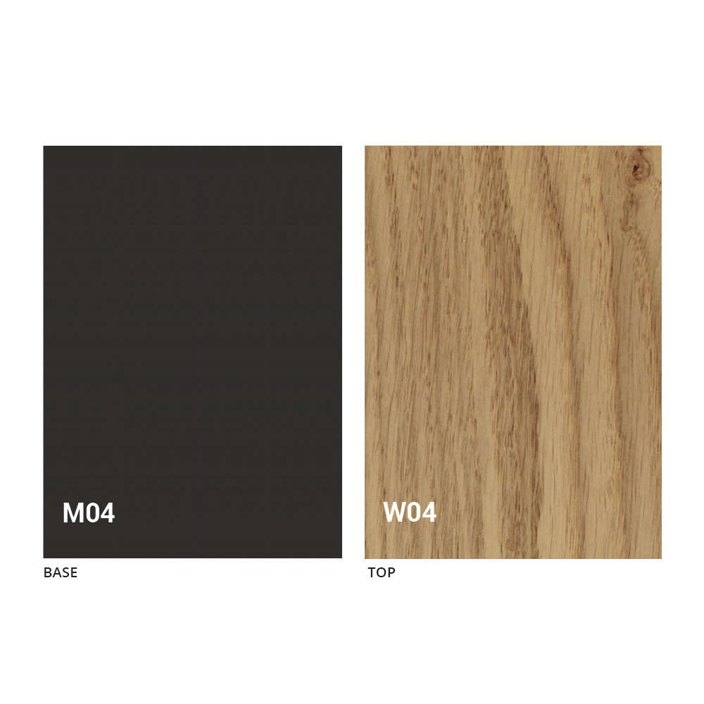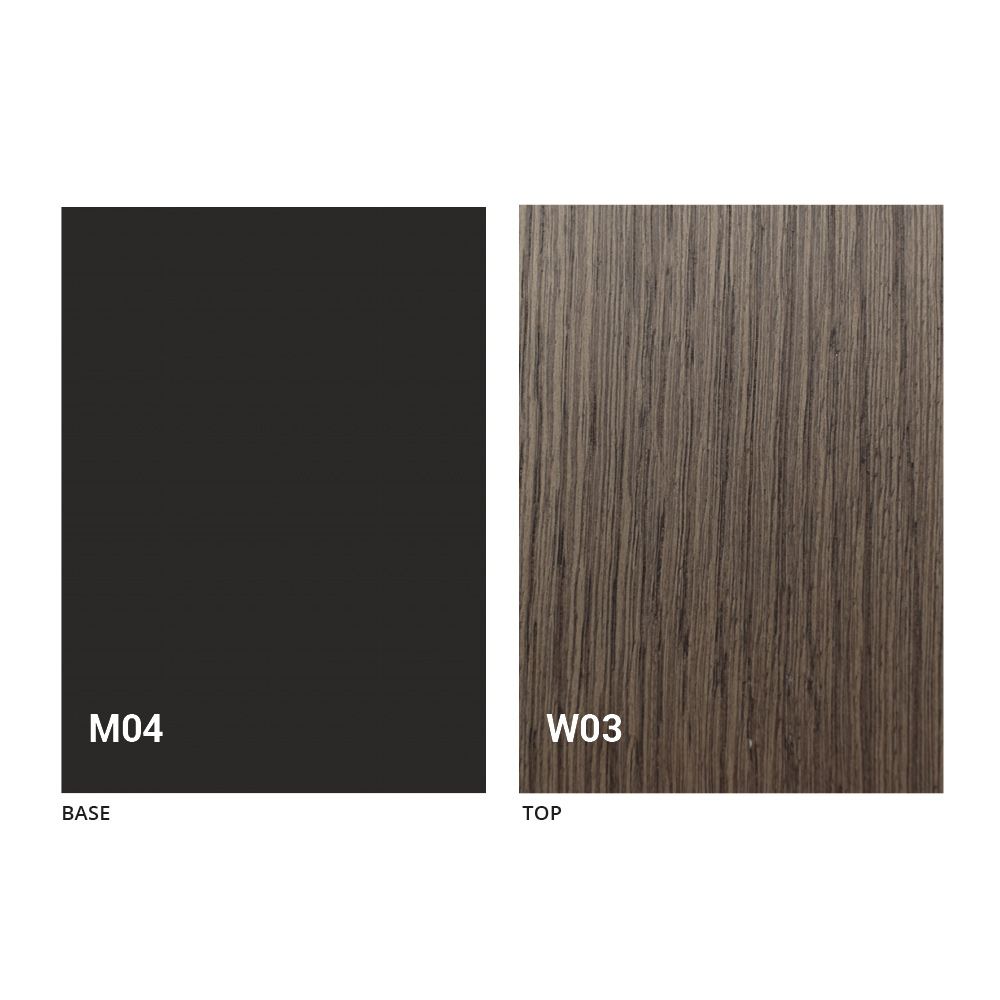 Het blad en de basis van de tafel kunnen worden aangepast met verschillende voorbeeldafwerkingen. Neem voor informatie contact met ons op via het formulier "