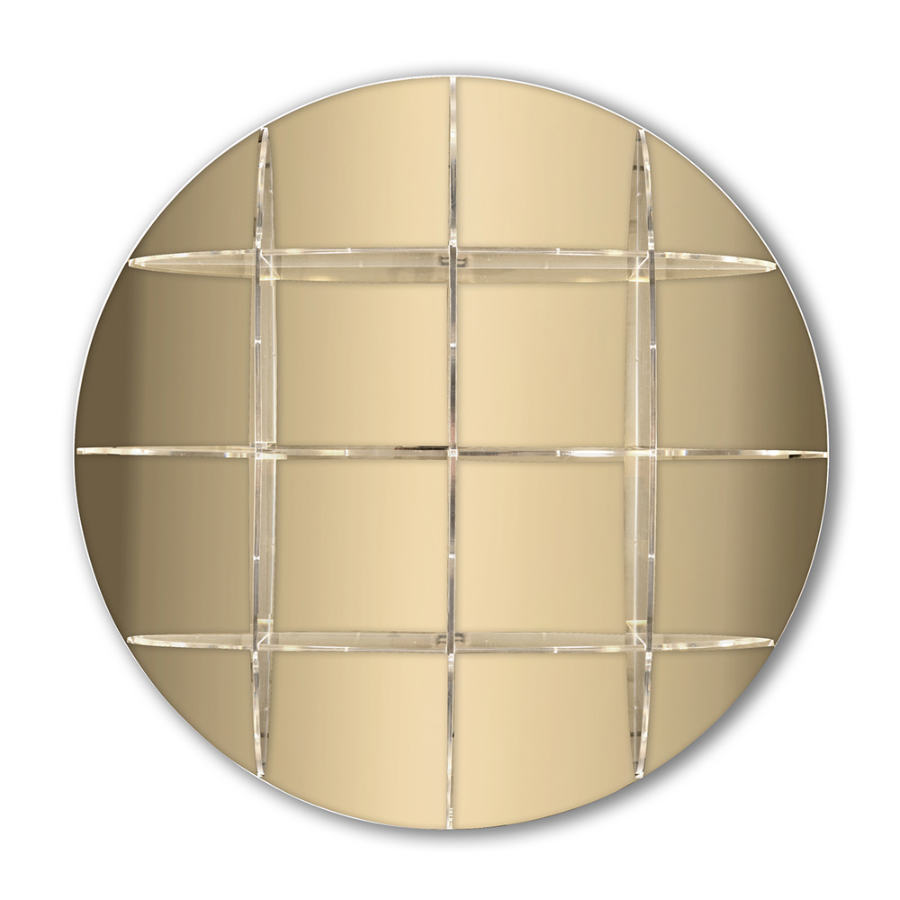 Boekenkast met ronde wand in goud of zilver plexiglas Gemaakt in Italië.