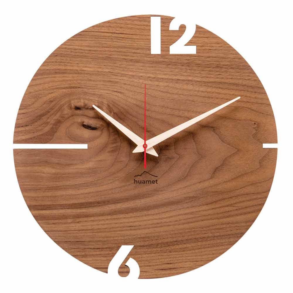 Modern design ronde wandklok in eiken, grenen of walnoot; handgemaakt in Italië.