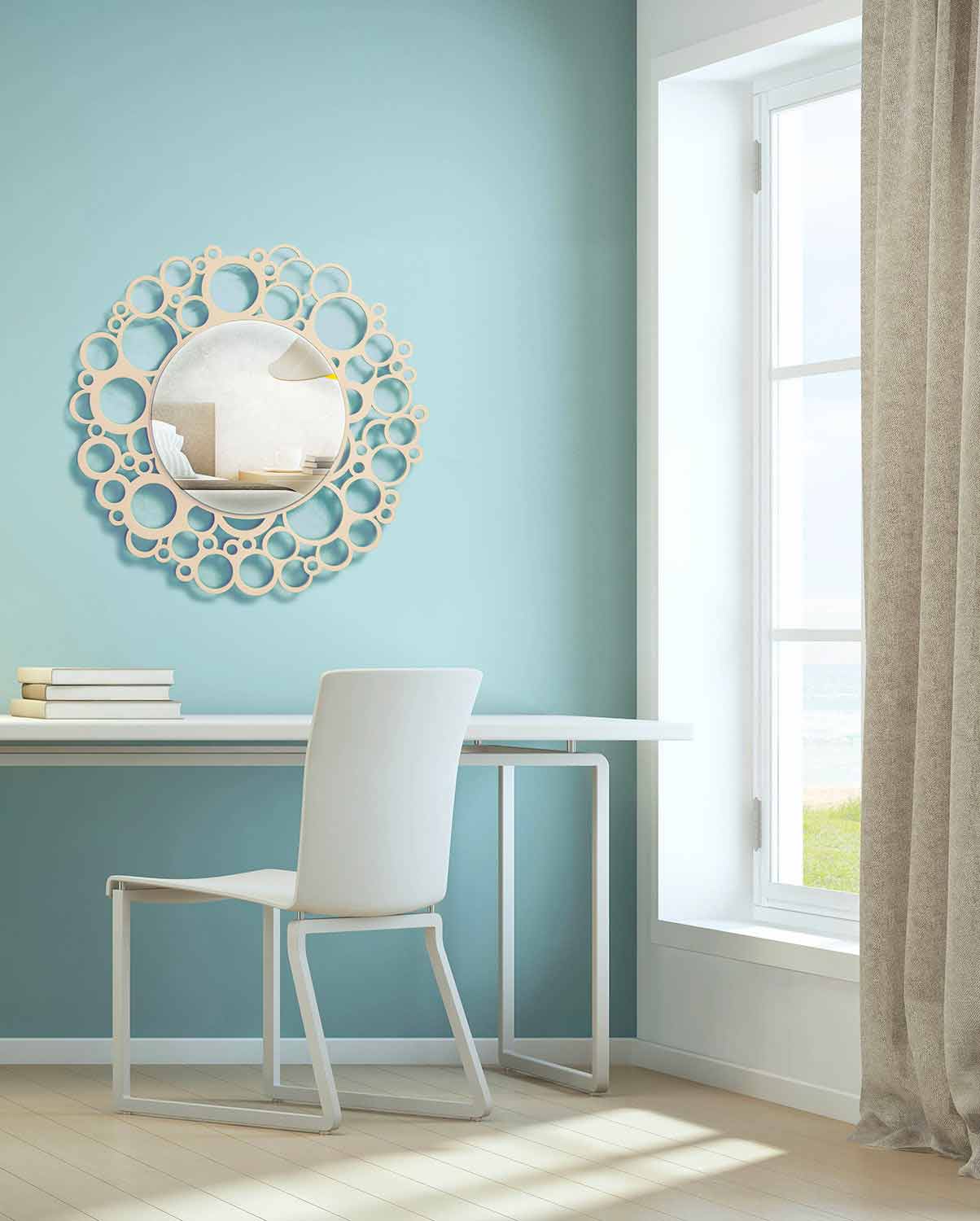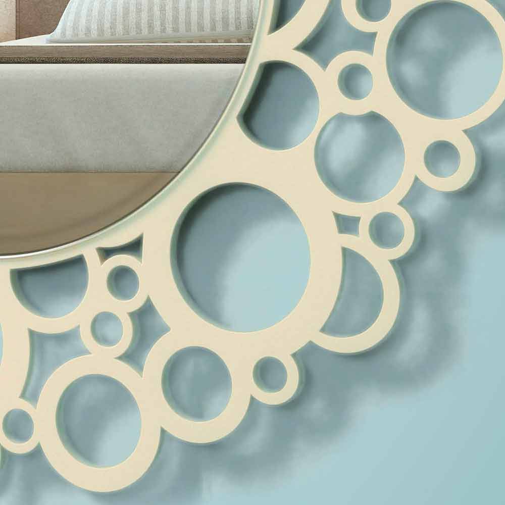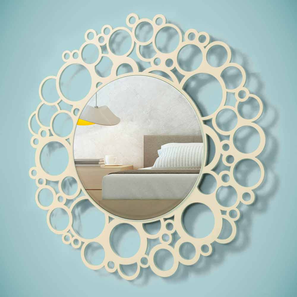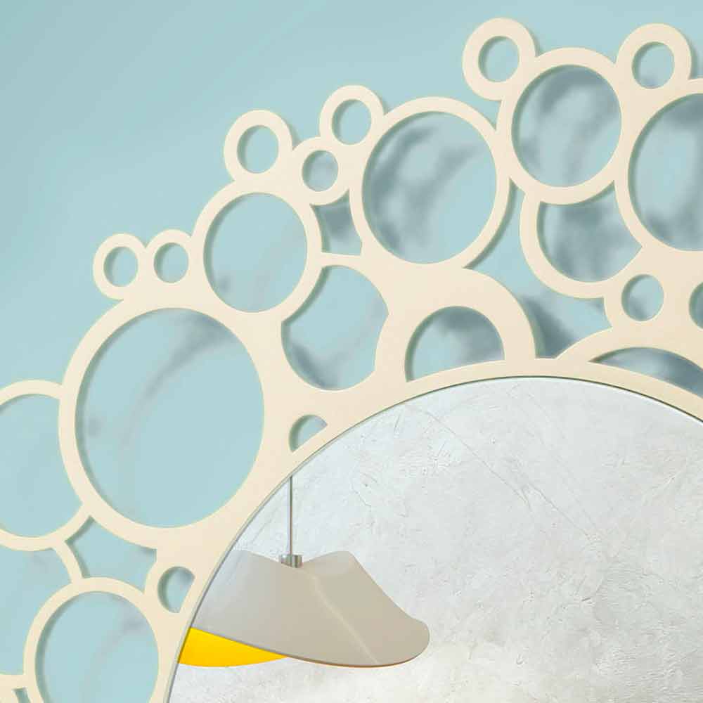 Ronde wandspiegel met zandbruine houten lijst, modern en minimalistisch design made in Italy.