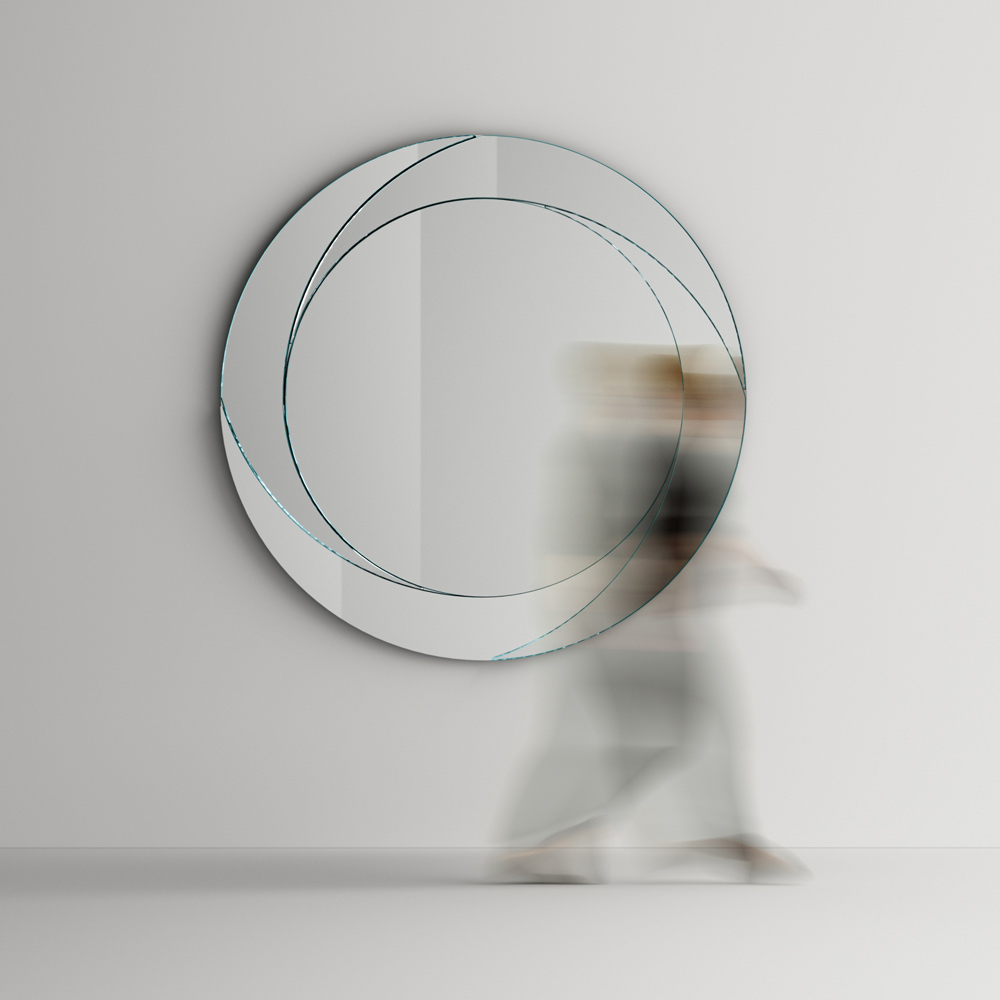 spel van perspectieven creëren dat het beeld dynamisch weerkaatst op de centrale spiegel. De eenvoudige maar indrukwekkende esthetiek is ideaal voor het voltooien van de muren van elk deel van het huis, van de ingang tot de woonkamer tot de slaapkamer, terwijl het tegelijkertijd helpt om de ruimtes optisch te vergroten voor een grotere en helderdere omgeving.
