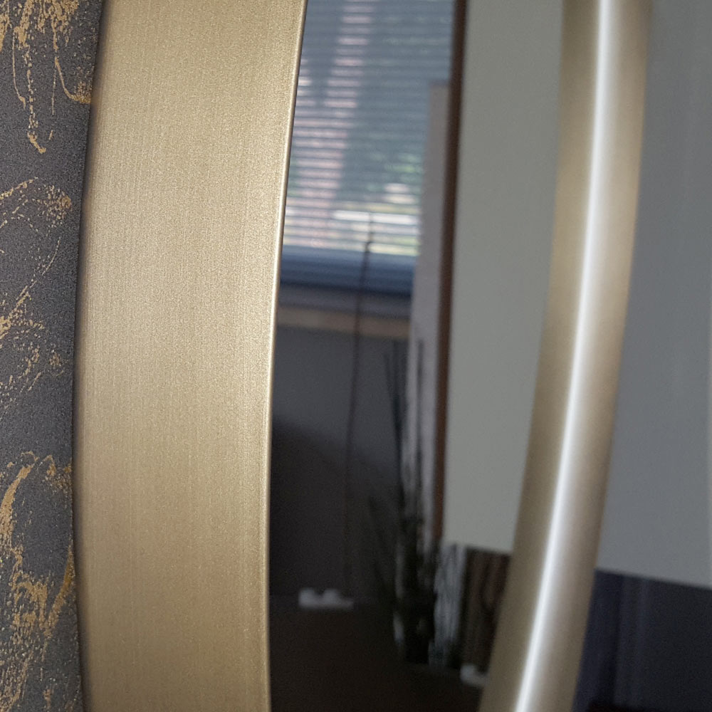 Ronde wandspiegel met metalen frame in 4 afwerkingen en led-verlichting, made in Italy.