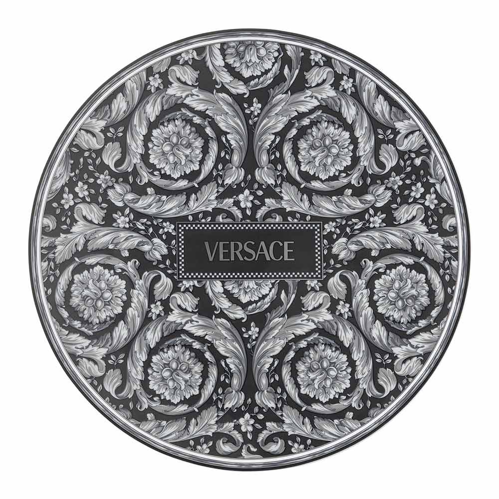 Dit unieke porseleinen bord vangt de essentie van luxe en elegantie met zijn ingewikkelde ontwerp van bloemen en krullen. Het bloemenpatroon in tinten grijs en zwart voegt verbluffende visuele diepte toe, waardoor dit bord niet alleen een functioneel object is, maar ook een waar kunstwerk om te tonen.