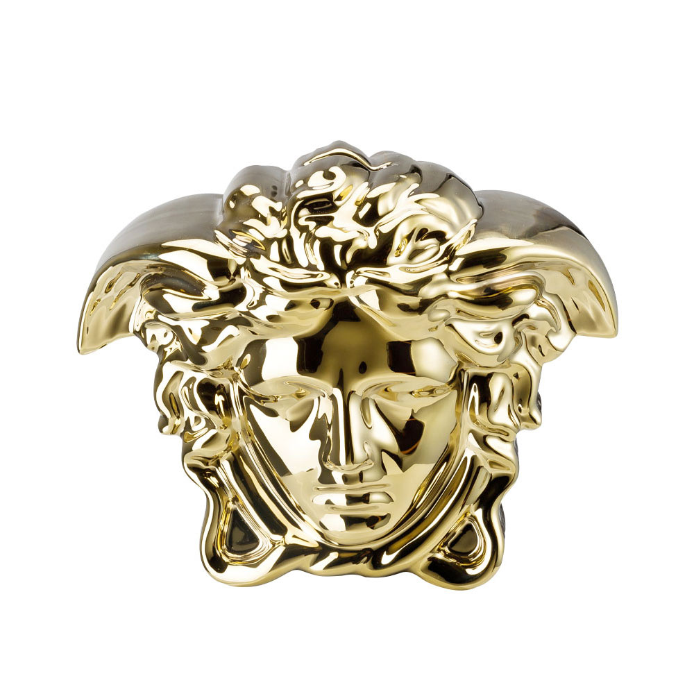 De Versace Break The Bank spaarpot , gemaakt van fijn porselein , is een icoon van luxe en exclusieve stijl . Verkrijgbaar in gouden of zilveren afwerkingen, het vertegenwoordigt het iconische gezicht van de Medusa , het onmiskenbare symbool van het huis, opnieuw geïnterpreteerd op een moderne en gedurfde manier.