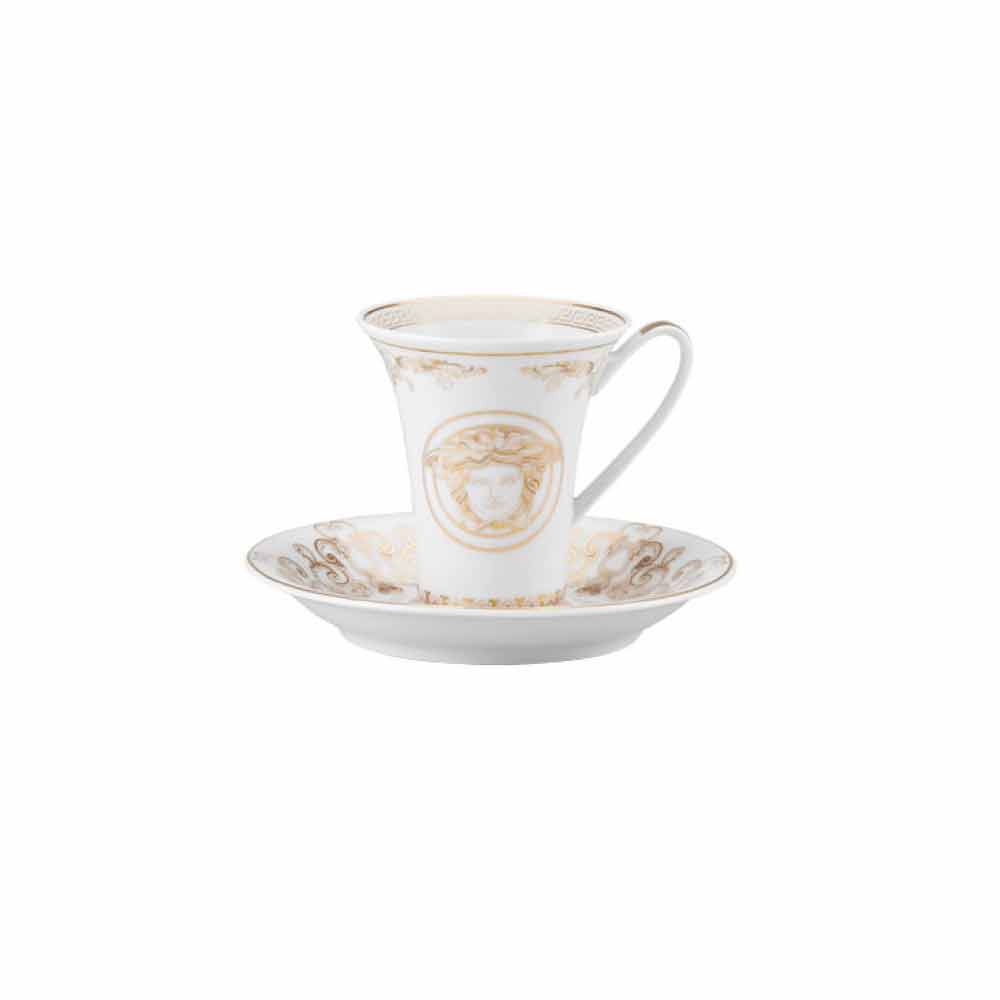 De verfijnde en design koffiekop en schotel van Versace maakt deel uit van de verfijnde en luxueuze Medusa Gala tafelcollectie.