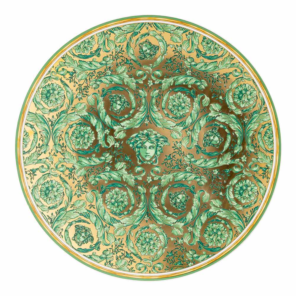 De smaragdgroene tinten en de verweven barokke motieven creëren een weelderige en gastvrije sfeer, die uw tafel omtoveren tot een droomscène. Perfect om een vleugje glamour en verfijning toe te voegen aan uw kerstdiners, het is een object dat traditie en moderniteit combineert met de unieke stijl van Versace.