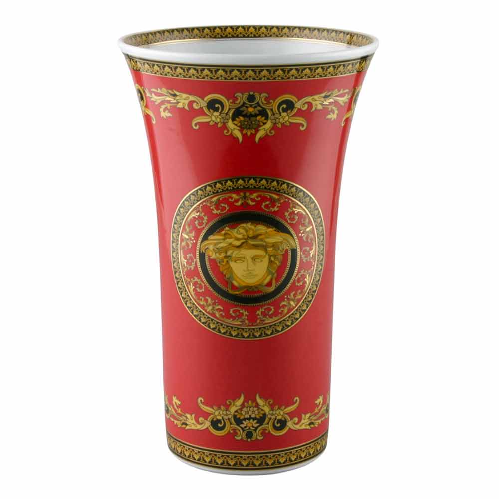 De Versace 34cm vaas heeft een uniek en modern design en maakt deel uit van de Medusa Rosso-lijn. Deze lijn bestaat uit twee of drie tinten: elegant rood en het zeer gewaardeerde goud en zwart. Samen vormen deze tinten een verfijnd motief dat u meeneemt naar fascinerende en verre tijden.