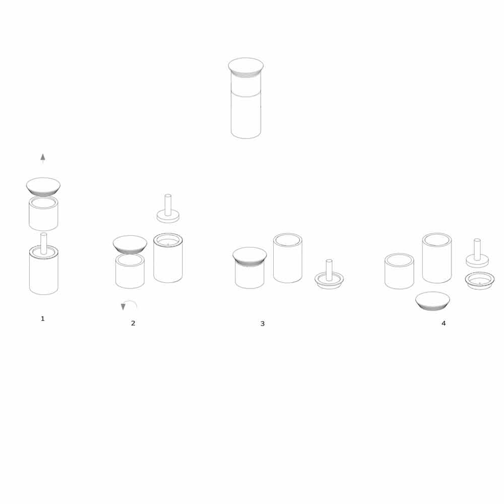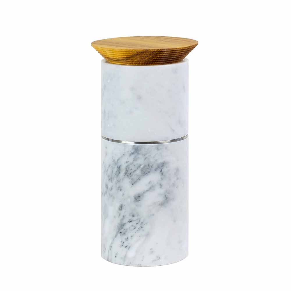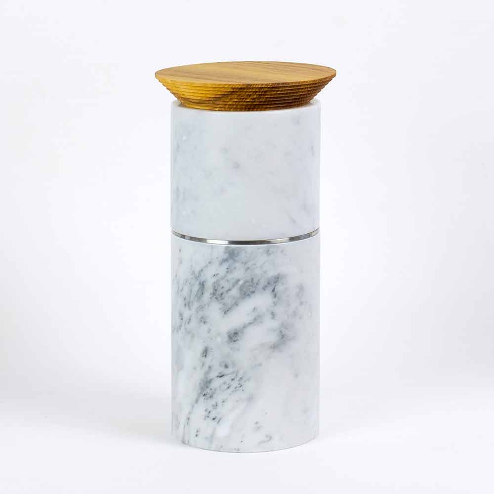 Keukenaccessoires torensamenstelling in marmer, hout en hoogwaardig staal gemaakt in Italië.