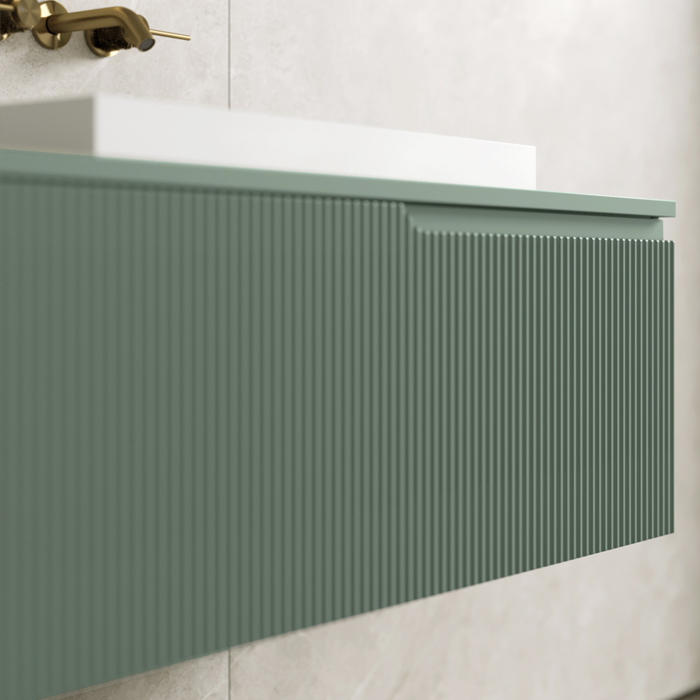 Badkamercompositie in geribbeld saliegroen MDF Made in Italy