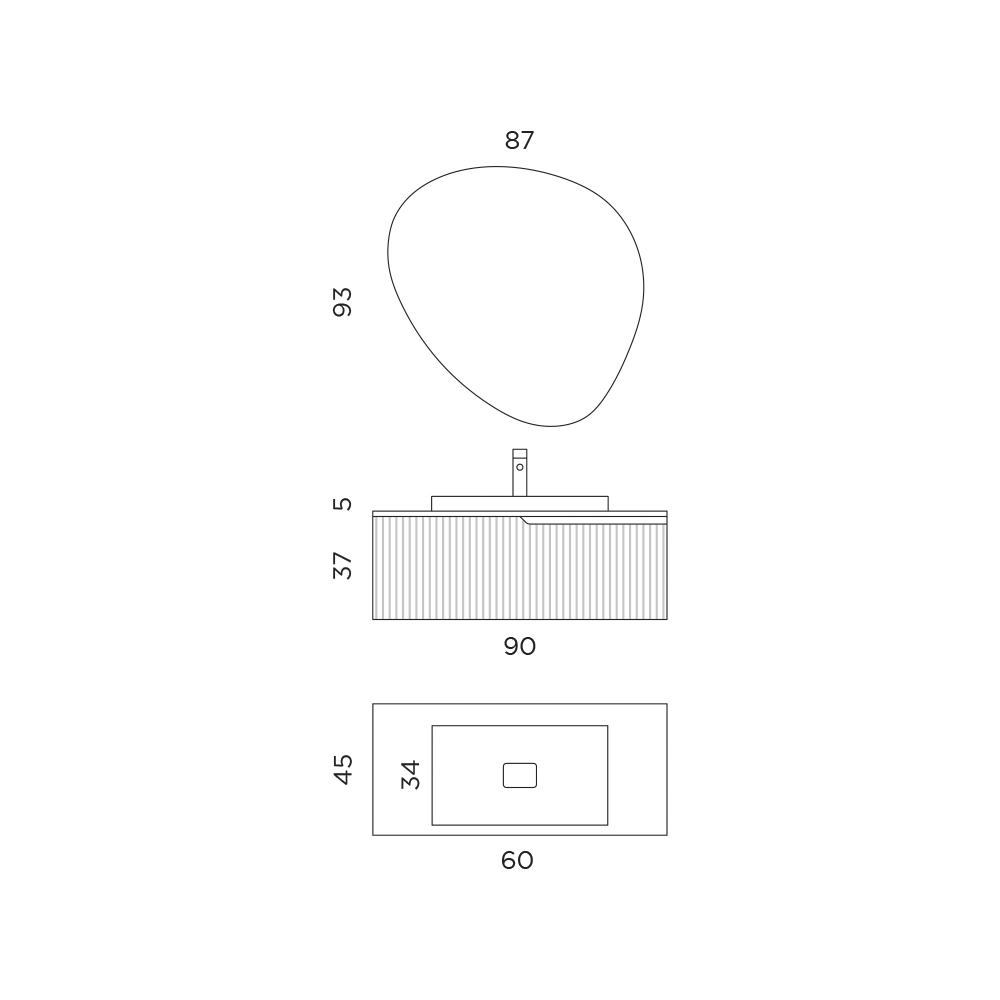 - Wastafel: Lengte 60 x Diepte 34 x Hoogte 15,7 cm