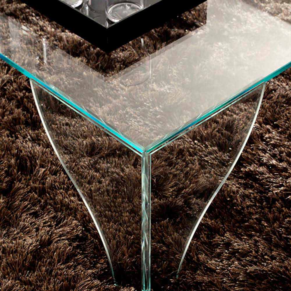 Eenvoudige en veelzijdige salontafel gemaakt in Italië met blad en poten van extra helder transparant glas.