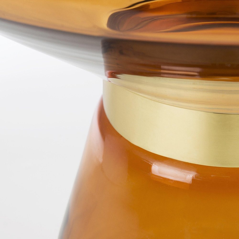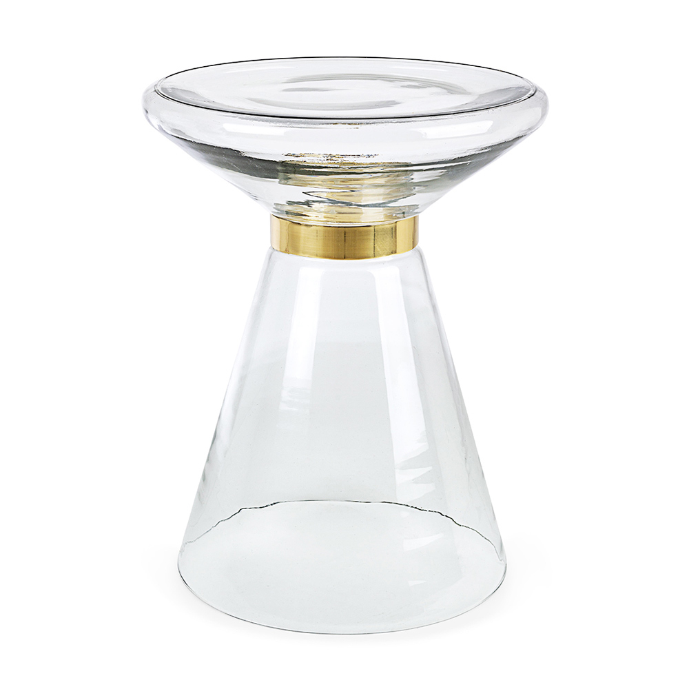 Salontafel in glas en decor in vermessingd staal - Gabrio