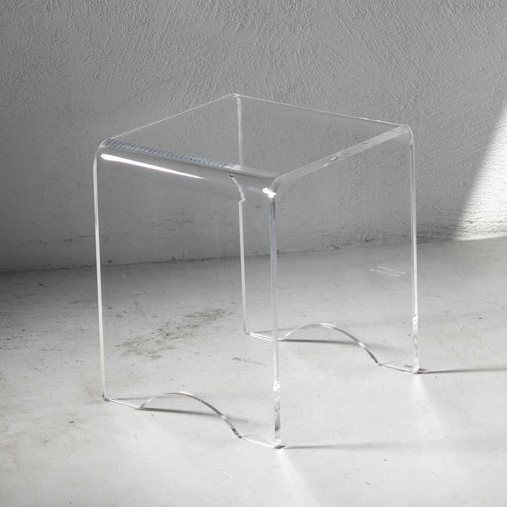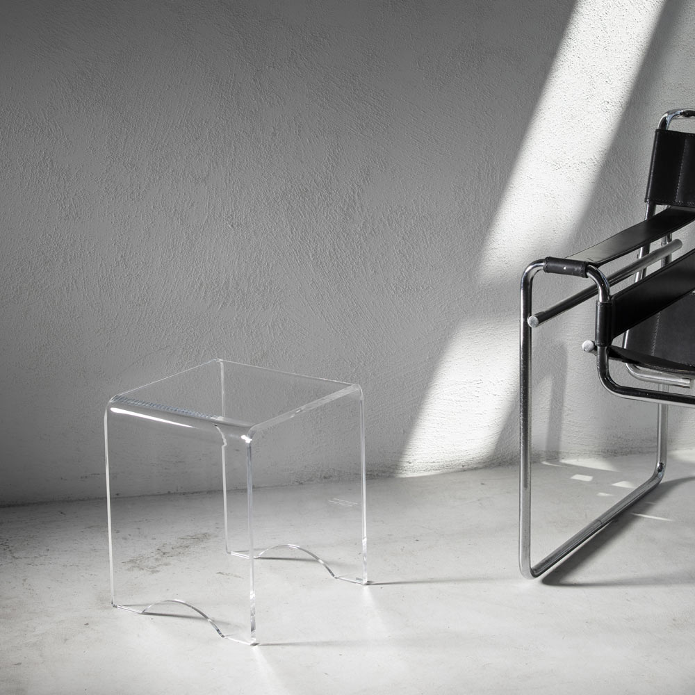 Design kruk in transparant acrylkristal gemaakt in Italië.
