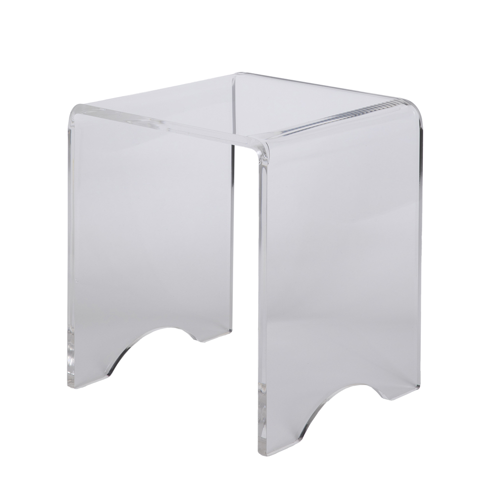 Deze salontafelkruk heeft een veelzijdig ontwerp met pure en minimale lijnen en is volledig gemaakt van transparant acrylkristal dat langs de hele omtrek is lasergesneden, wat hem een buitengewone glans geeft.