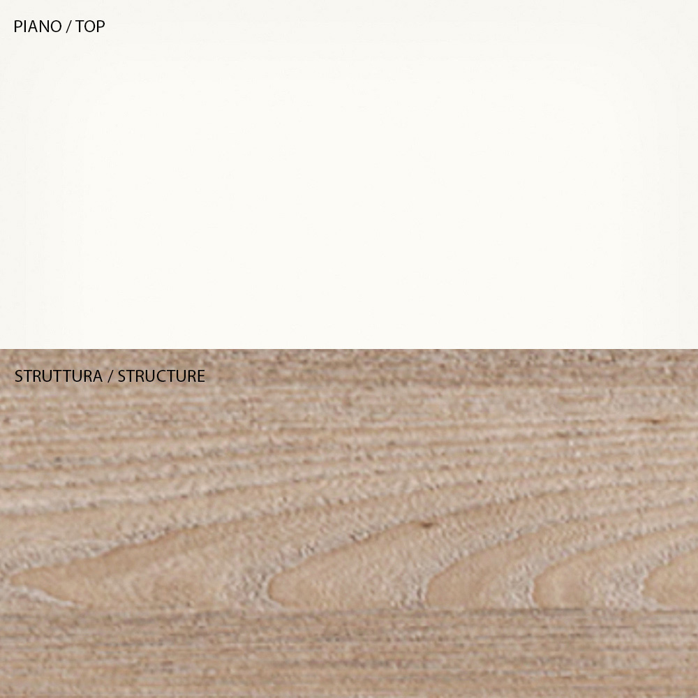 Beschikbare afwerkingen:- structuur in eiken afwerking, bovenblad en opbergvak in mat witte afwerking