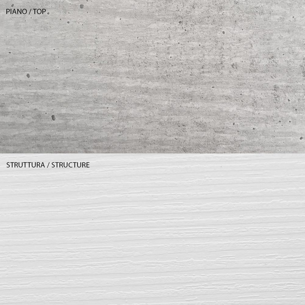 - structuur met open poriën in witte lariks, bovenblad en een containercompartiment in betonafwerking