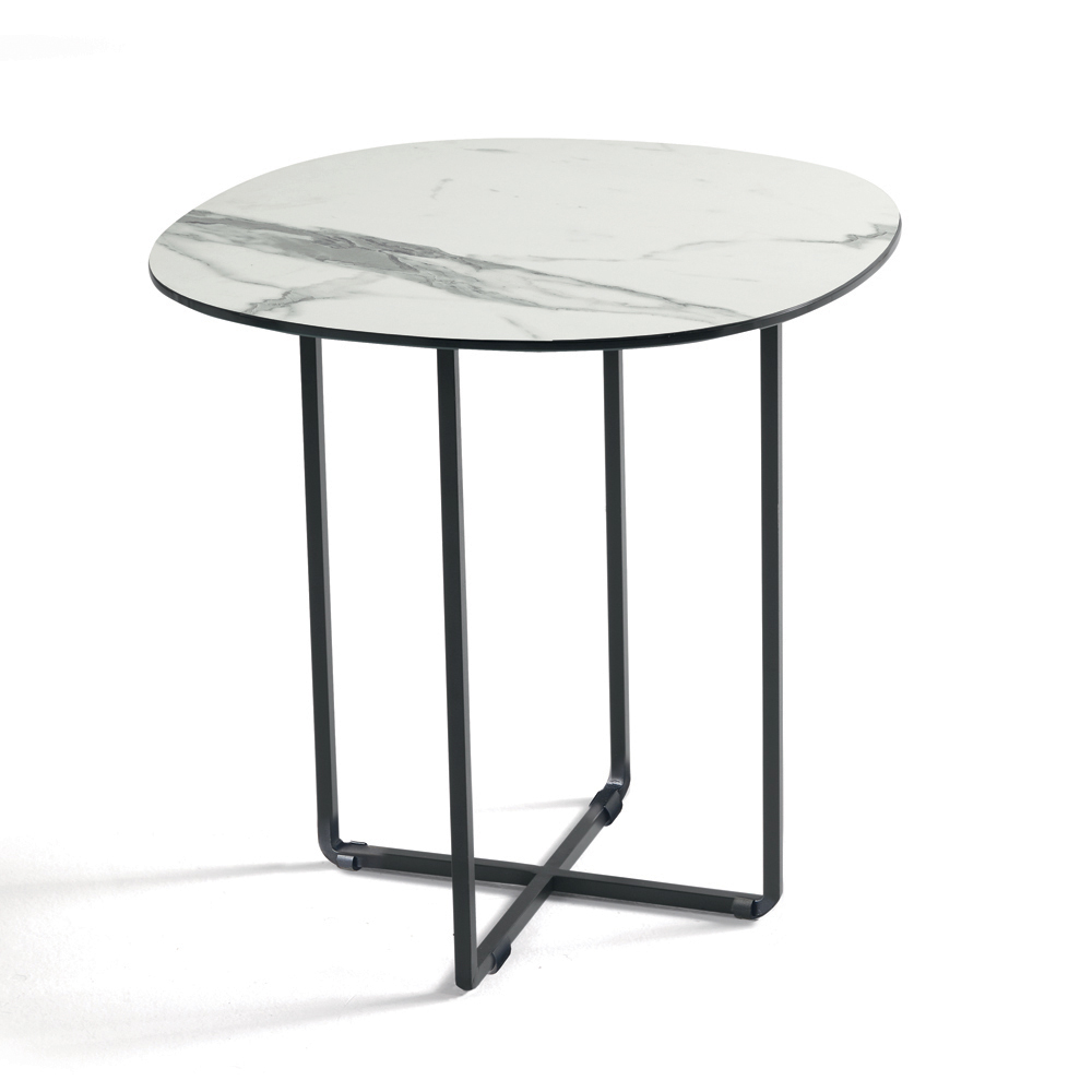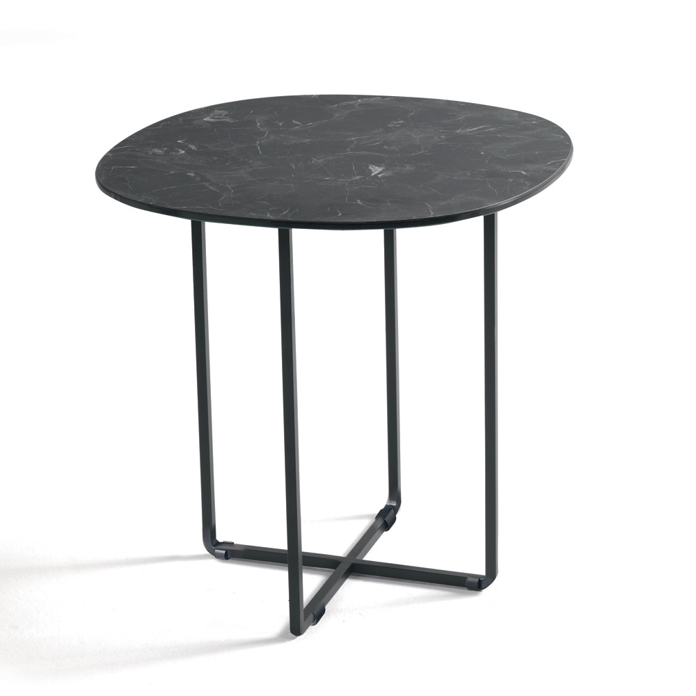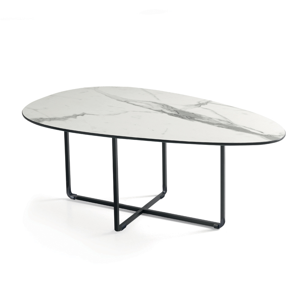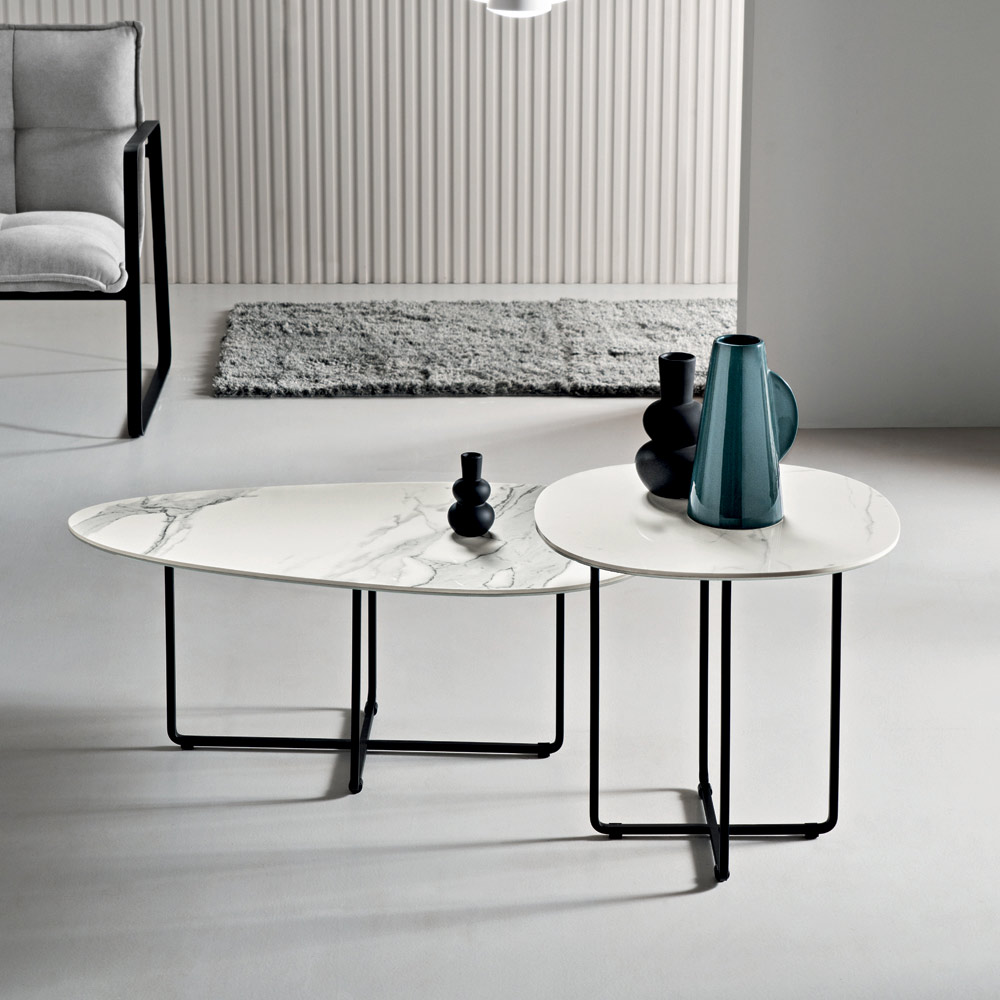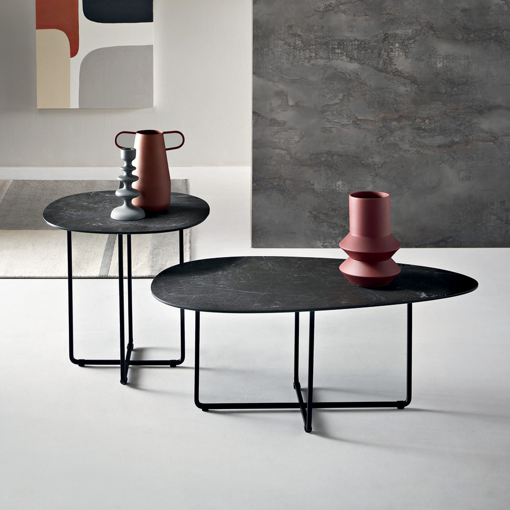 Het frame is gemaakt van gelakt metaal , stevig maar toch licht van uiterlijk, waardoor het harmonieus in moderne interieurs past. De strakke, goed geproportioneerde vormen geven de tafel een elegante en tijdloze uitstraling, perfect voor diverse inrichtingsstijlen.