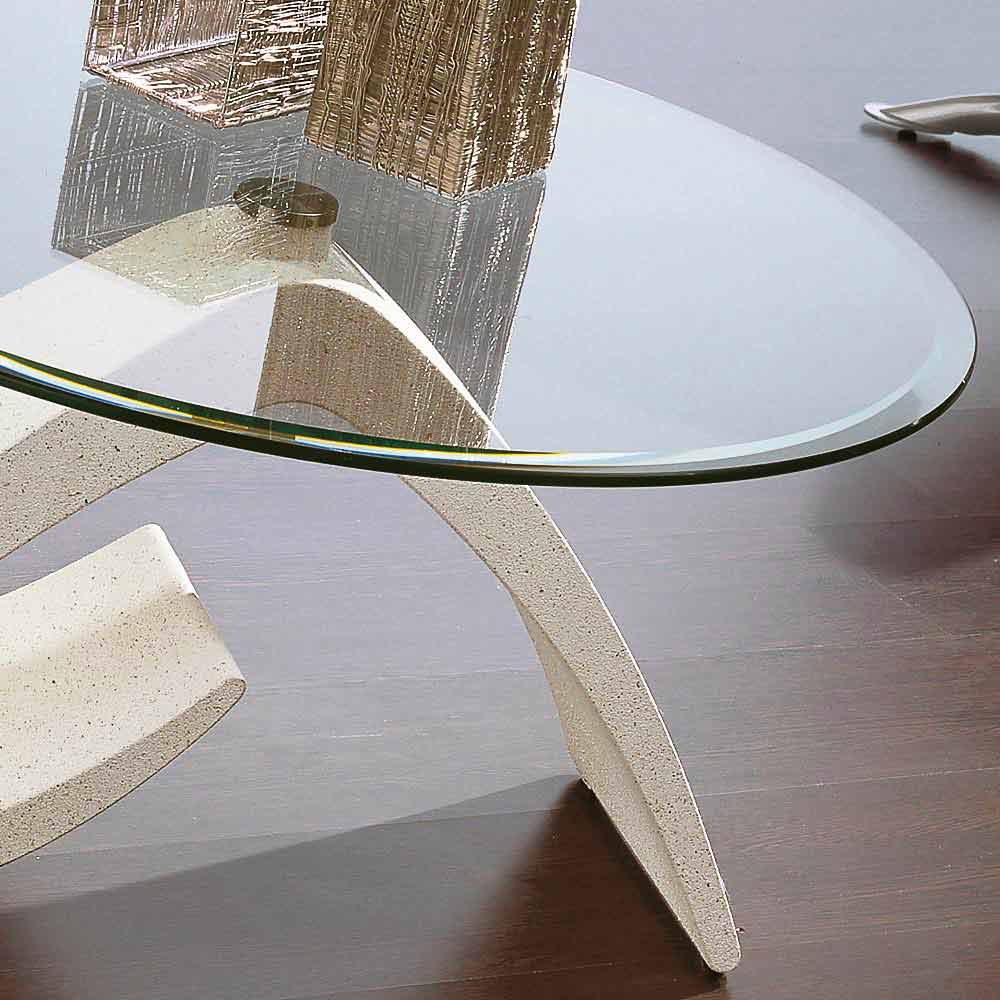 Salontafel gemaakt in Italië met rond blad in afgeschuind transparant glas en onderstel in mineraal marmer , een materiaal verkregen door marmerpoeders te mengen. Een exclusief en elegant ontwerp kenmerkt dit meubelstuk met een sterk verfijnde persoonlijkheid , ideaal voor het inrichten van elke huiselijke leefruimte met karakter, met een avant-gardistisch tintje . Dankzij het gebruik van hoogwaardige grondstoffen en de 100% Made in Italy-afwerking ontstaat een kostbare en waardevolle salontafel die opvalt door zijn elegantie en creativiteit in de vormen. Het onderstel in mineraal marmer biedt de salontafel een uitstekende stevigheid en robuustheid en geeft de esthetiek zijn sterke moderne stijl. Zijn bijzondere vorm, gekenmerkt door eenvoudige geometrische lijnen, vormt een prachtige harmonie met de zachte vorm van het glazen blad, waardoor het productontwerp een exclusief esthetisch gevoel krijgt.