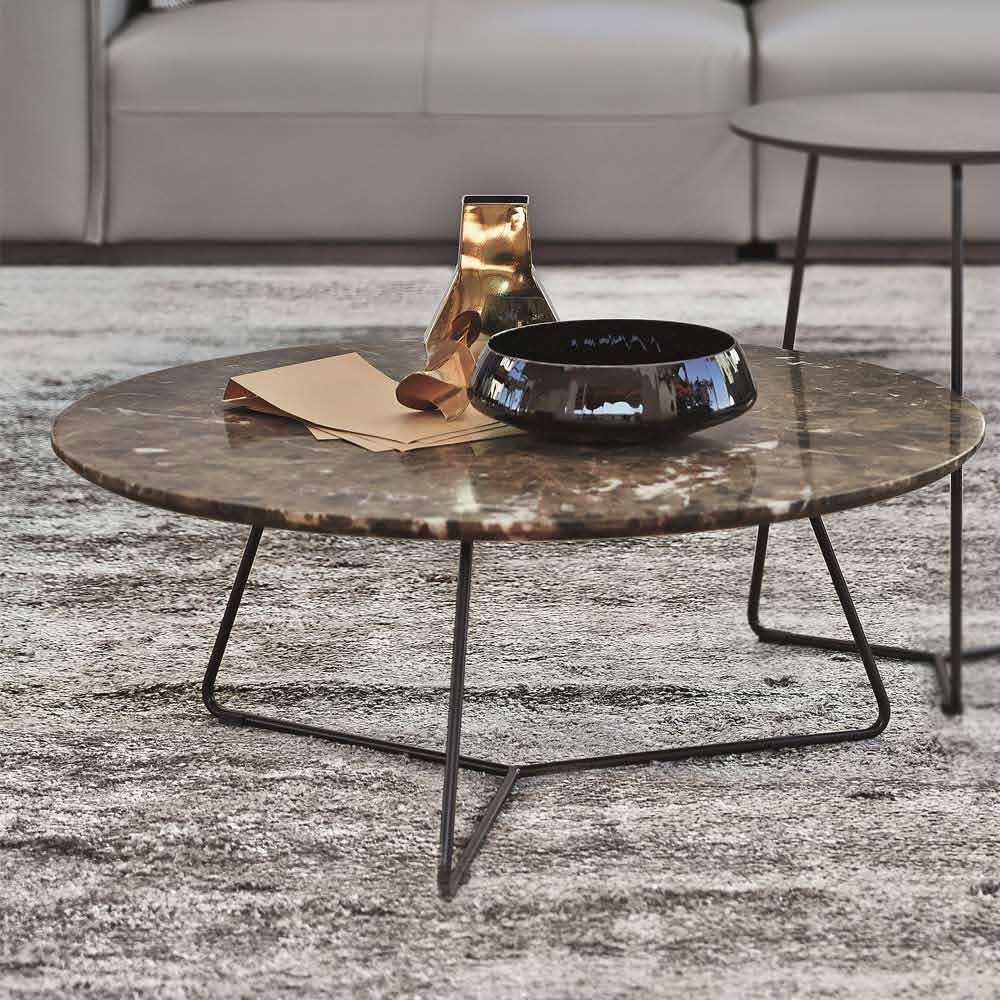 marmeren blad rust. Gekenmerkt door een uiterst informeel ontwerp, blijkt dit artikel voor het inrichten van de woonruimte veelzijdig en met een transversale stijl, waardoor het gemakkelijk te combineren is met de meest uiteenlopende moderne inrichtingssituaties. De perfecte combinatie tussen de tijdloze elegantie van marmer en de onbetwiste moderniteit van metaal stelt je in staat om een salontafel te creëren die functionaliteit en design belichaamt, fundamentele elementen om het meubilair van je woonkamer op een originele en avant-gardistische manier af te maken.