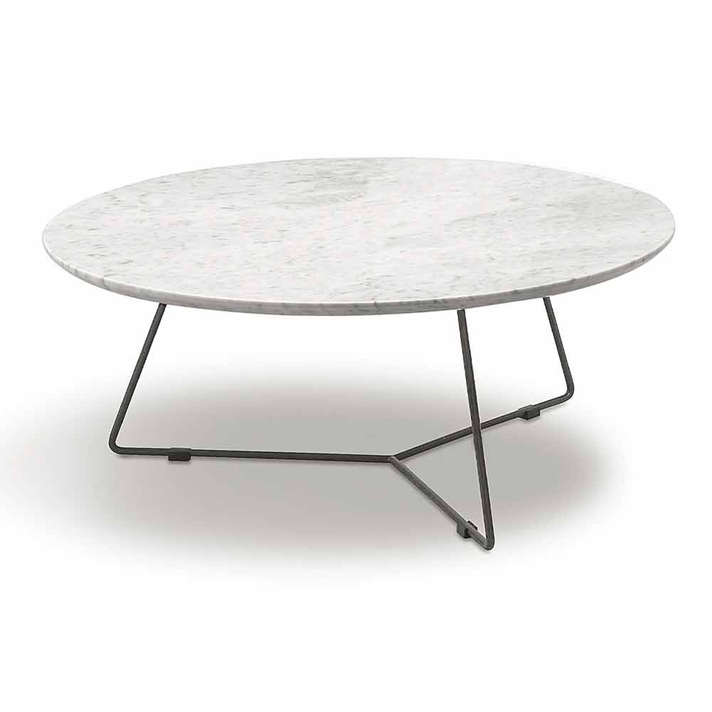 Ronde metalen salontafel met marmeren blad Gemaakt in Italië, hoge kwaliteit.