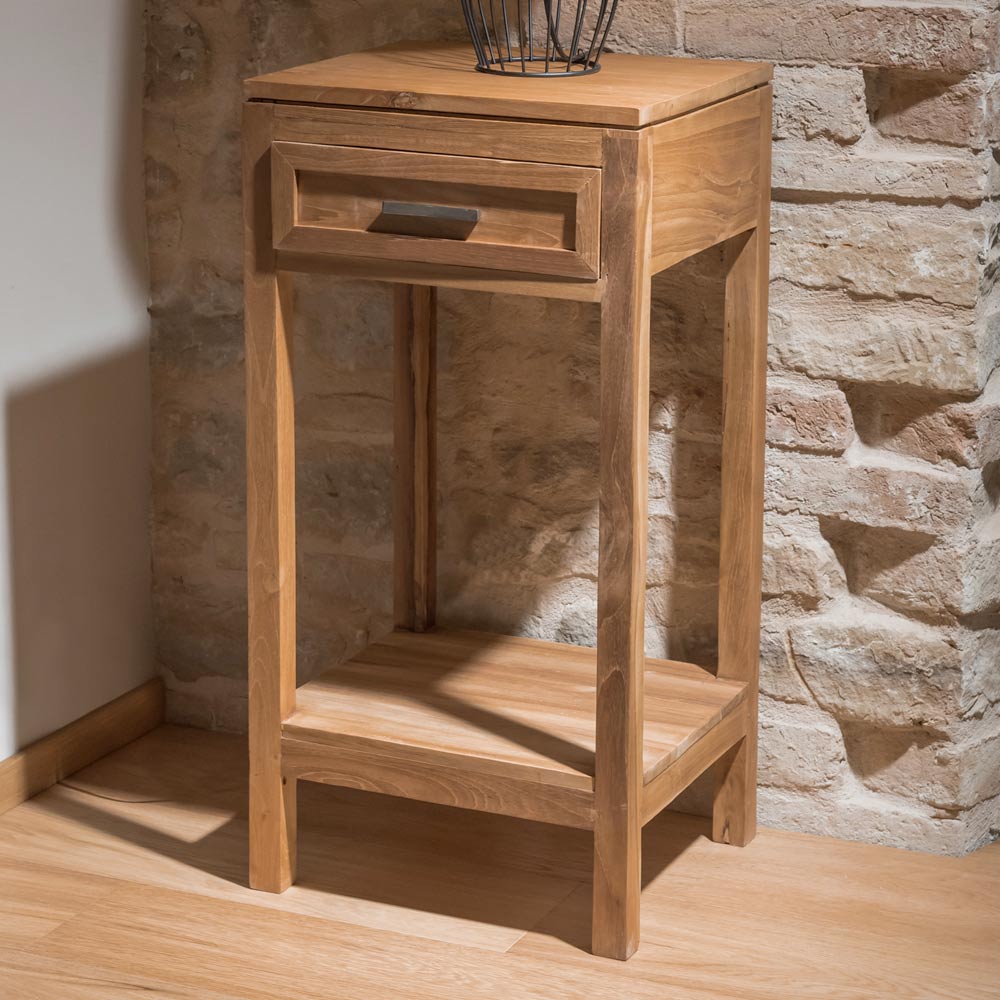 Voorzien van 1 lade en een praktische onderste plank , biedt het een functionele oplossing voor het opbergen van kleine voorwerpen, met behoud van orde en stijl.