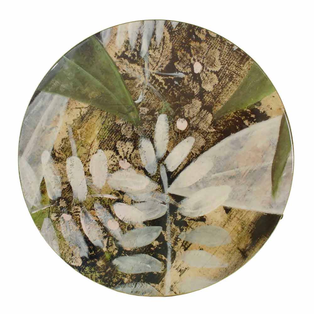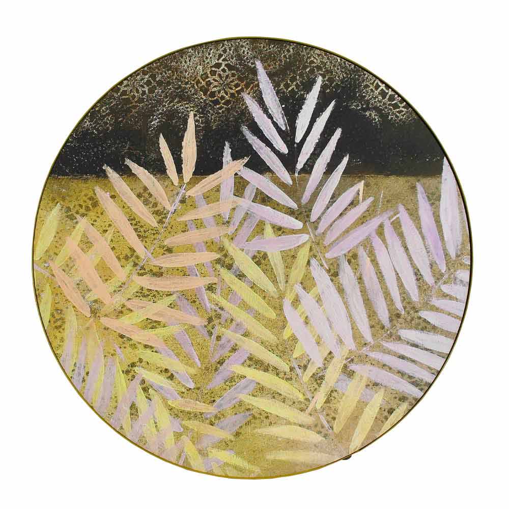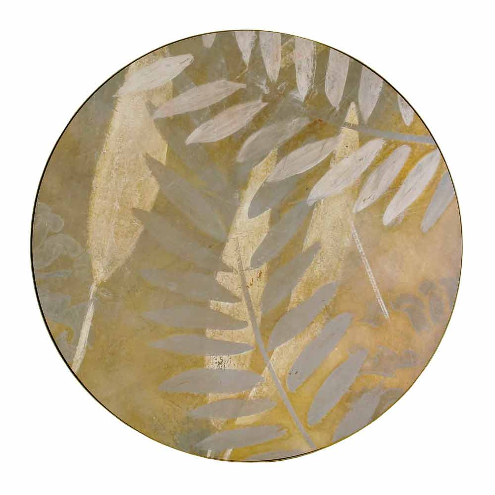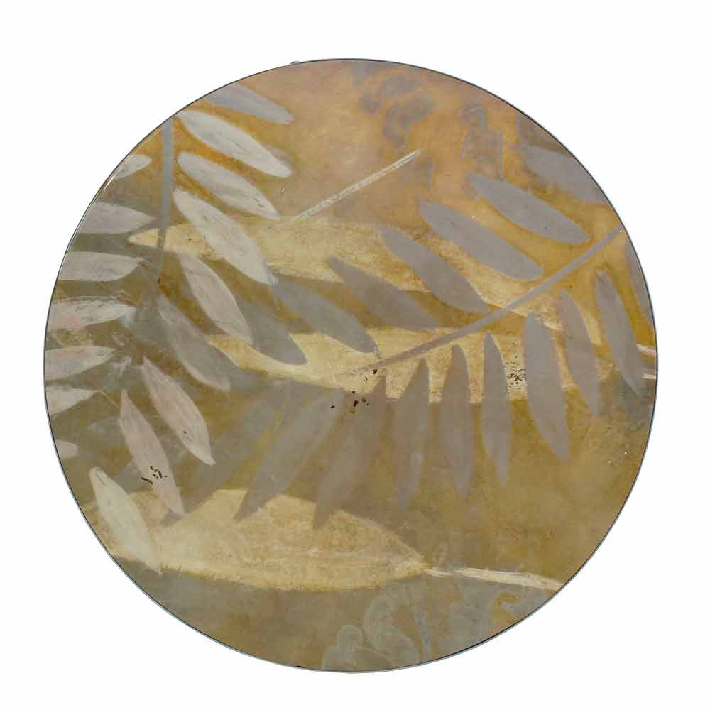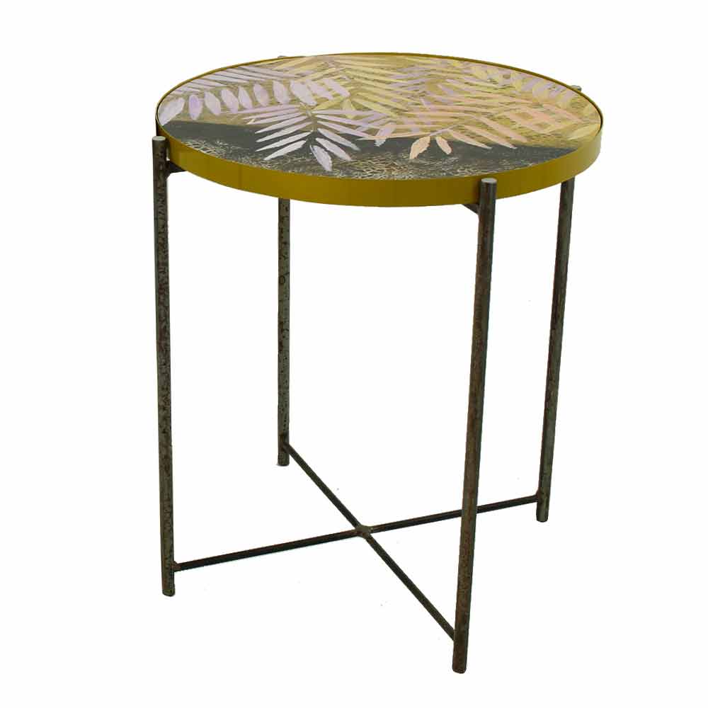 Salontafel voor binnen of buiten met metalen onderstel en blad gedecoreerd en met hars bekleed Made in Italy.