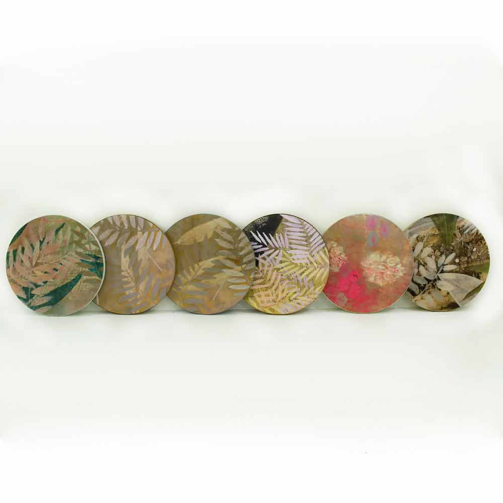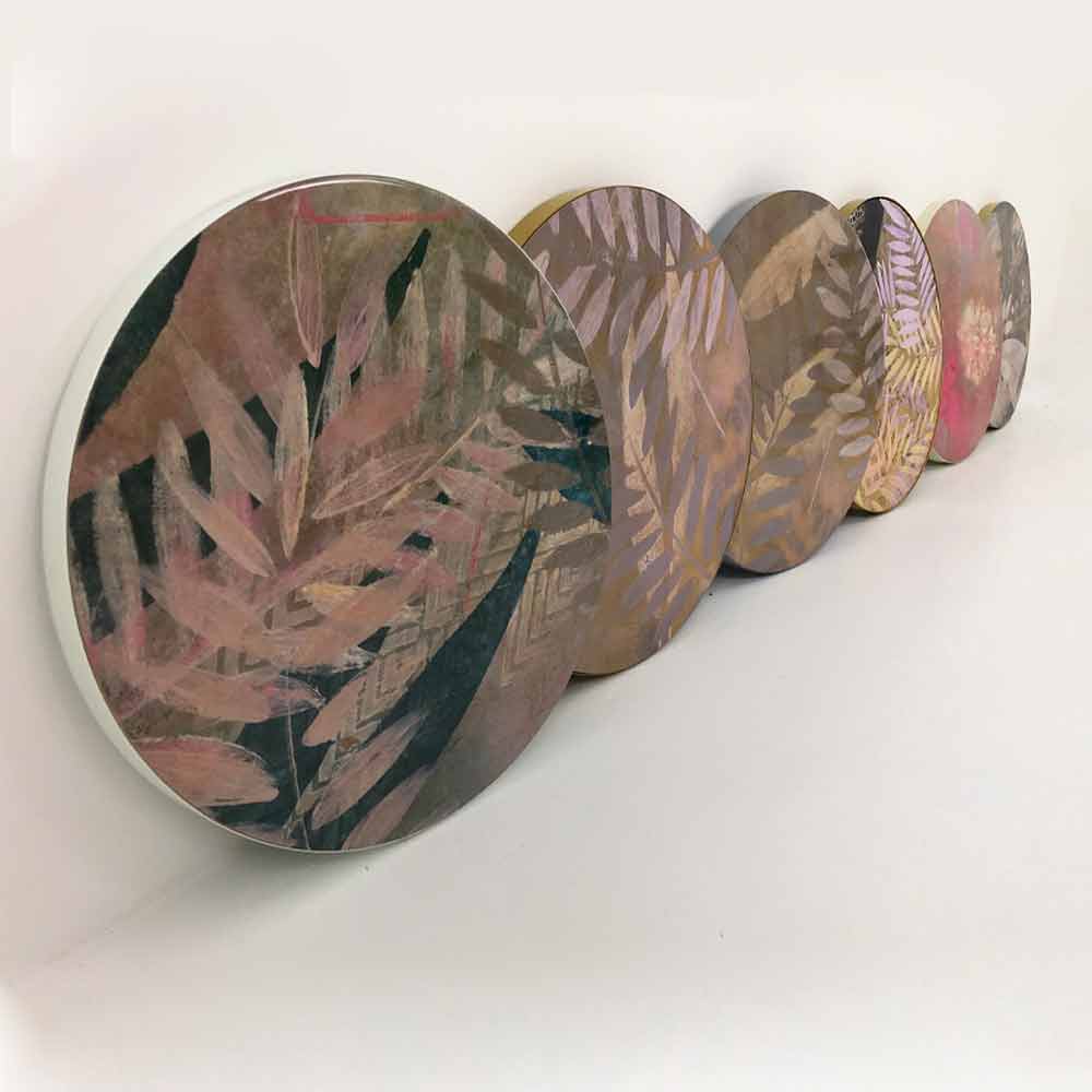 Een schilderij dat voortkomt uit meditatie en een reis, fysiek in India, maar vooral ook innerlijk naar jezelf. De gekozen kleuren voor het schilderij zijn de primaire kleuren, ze worden met elkaar gemengd om elke keer de gewenste kleur te creëren. In een spel van tinten en vlakken vertellen deze schilderijen de tijd in twee dimensies: de tijd die voorbijgaat en de magische tijd van meditatie. Schilderijen gecombineerd met veelgebruikte meubelobjecten zoals salontafels om een magische en unieke toets aan uw woonkamer te geven.