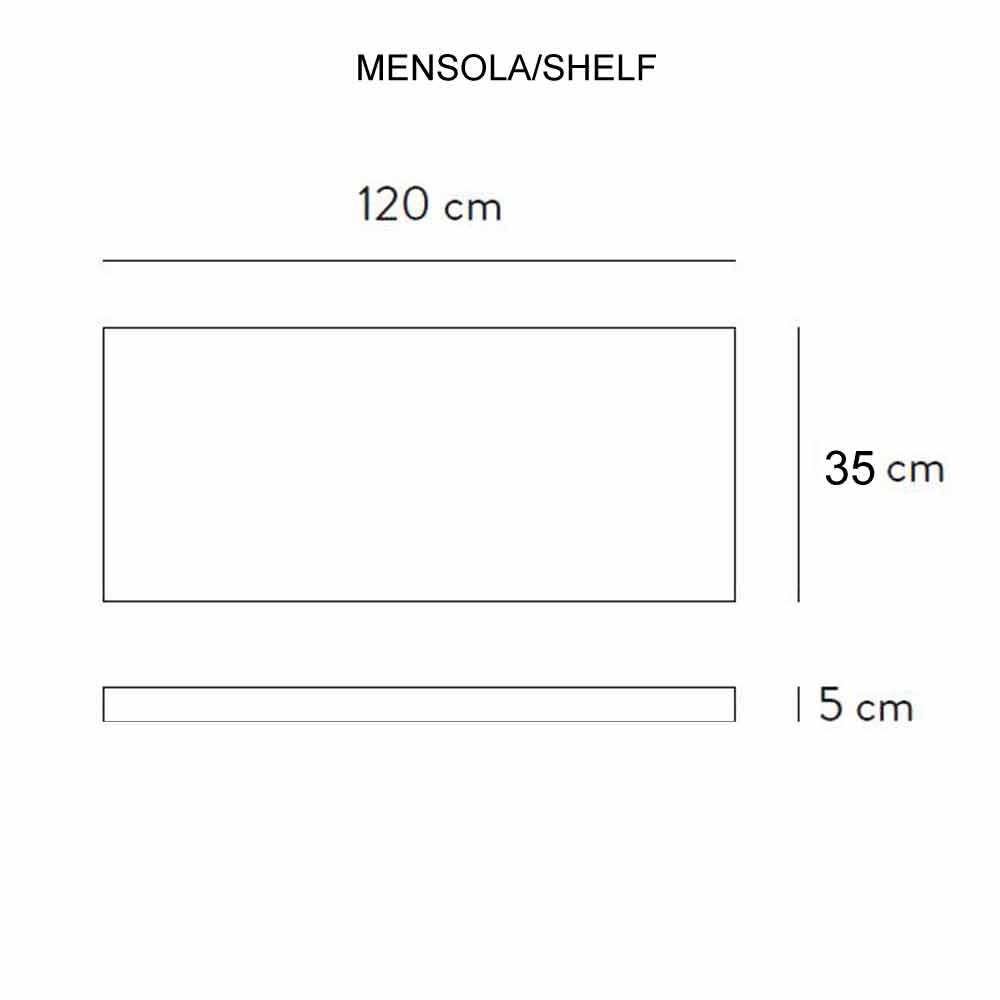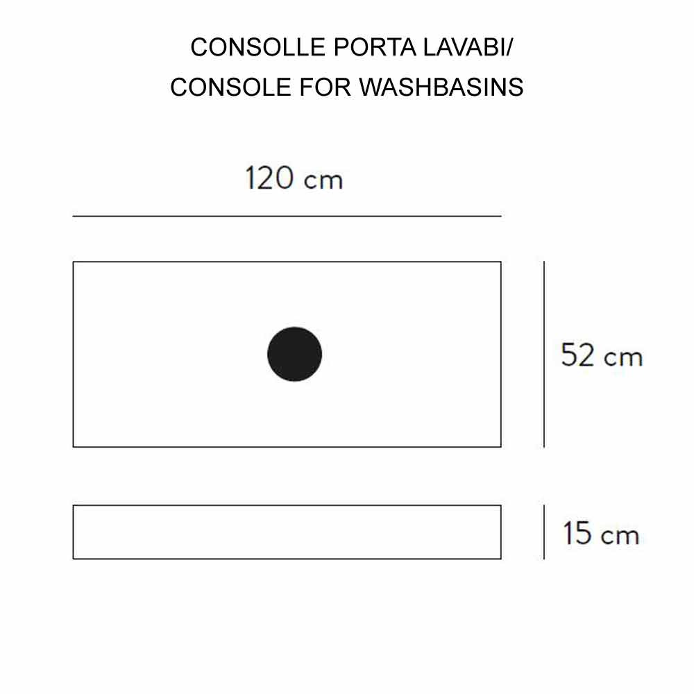 De samenstelling omvat:- hangende wastafelconsole: B 120 x D 52 x H 15 cm