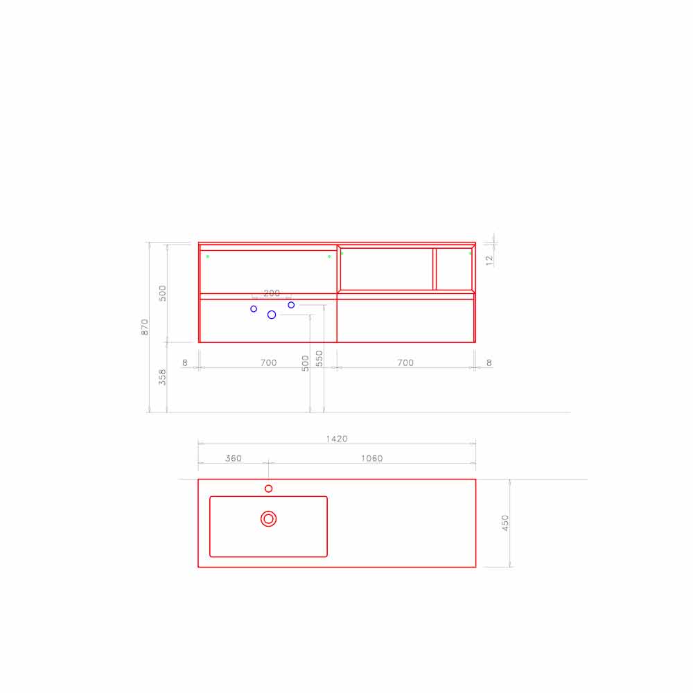 Deze formele duidelijkheid wordt gegeven door de groefdeur met schuin profiel en de inbouwwastafel .