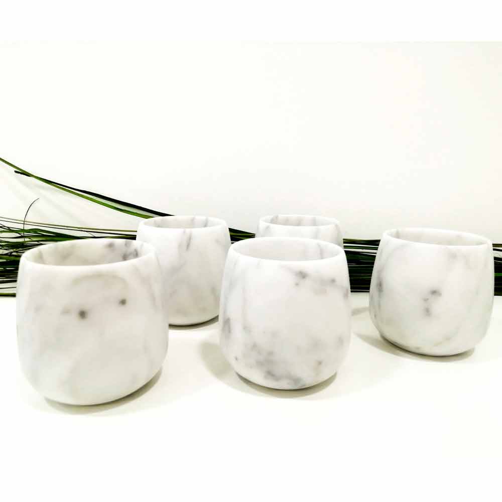 Samenstelling van 2 design glazen gemaakt van Carrara marmer Made in Italy.