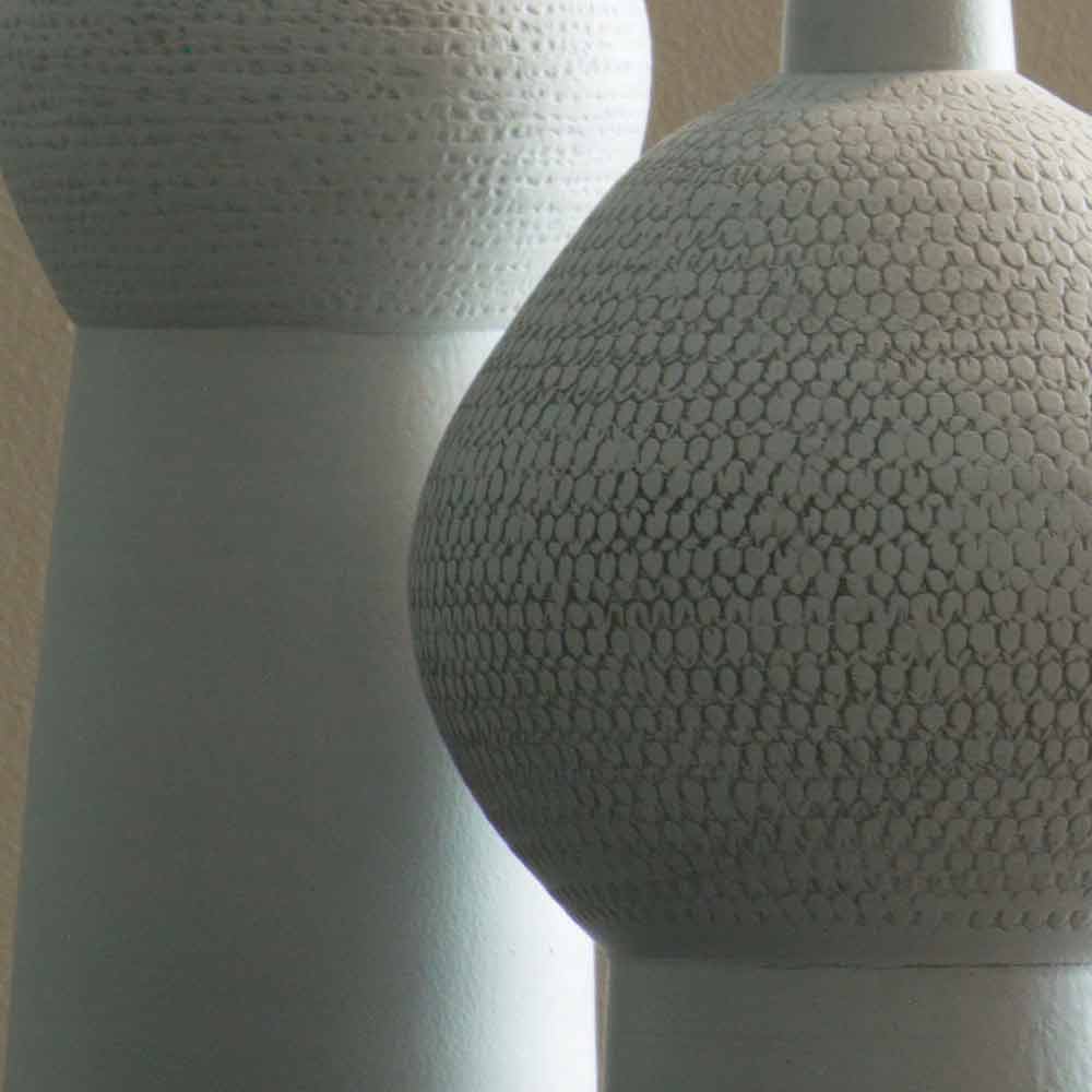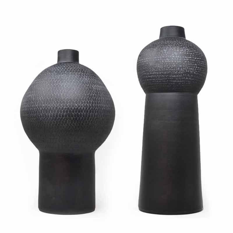 Paar decoratieve vazen van verschillende afmetingen gemaakt van keramiek.