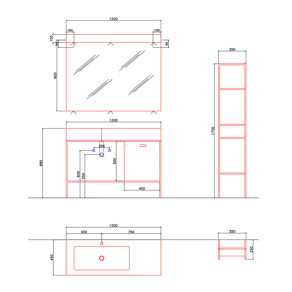 Samenstelling van badkamermeubels, modern artisanaal design, gemaakt in Italië.