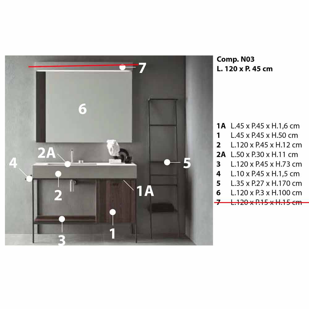 6 L.120 x P.3 x H.100 cm