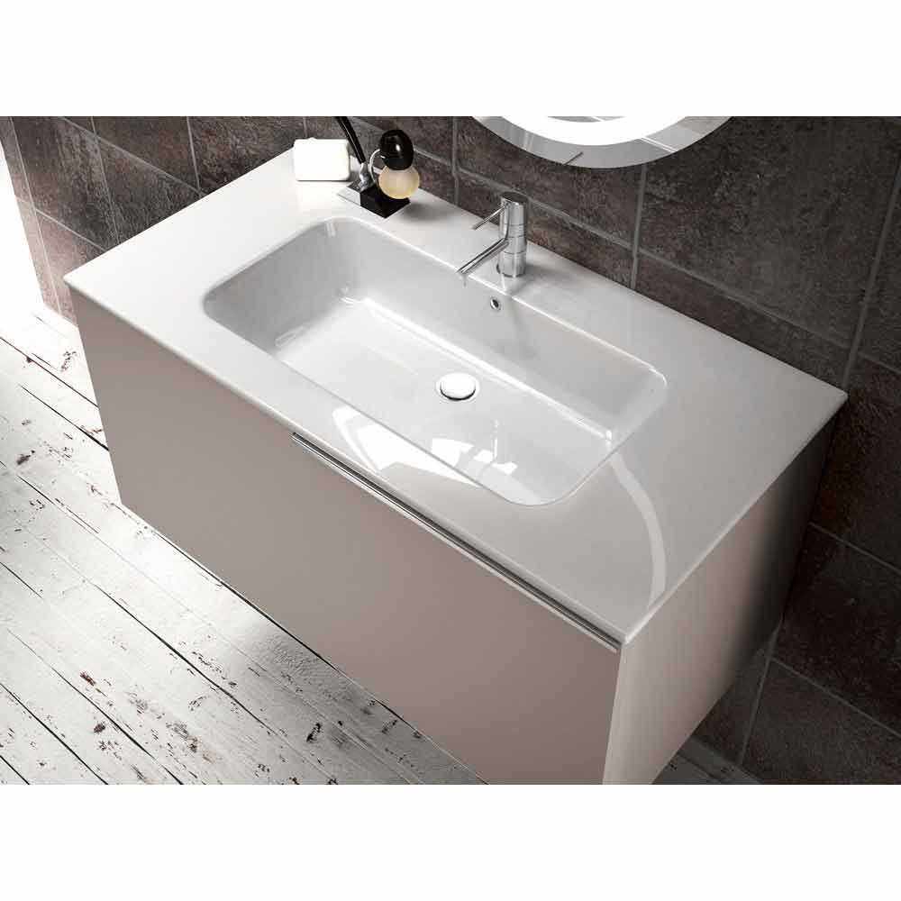 - Een witte keramische wastafel; L91xH1,4xP46,5 cm;
