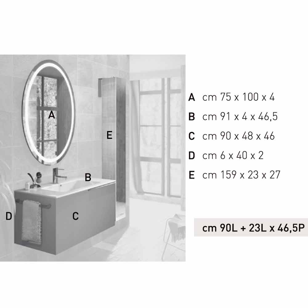 - Een draaiende zuil in ecolegno gezaagd eiken met een façade met spiegel en één open; L159xH23xP27 cm.