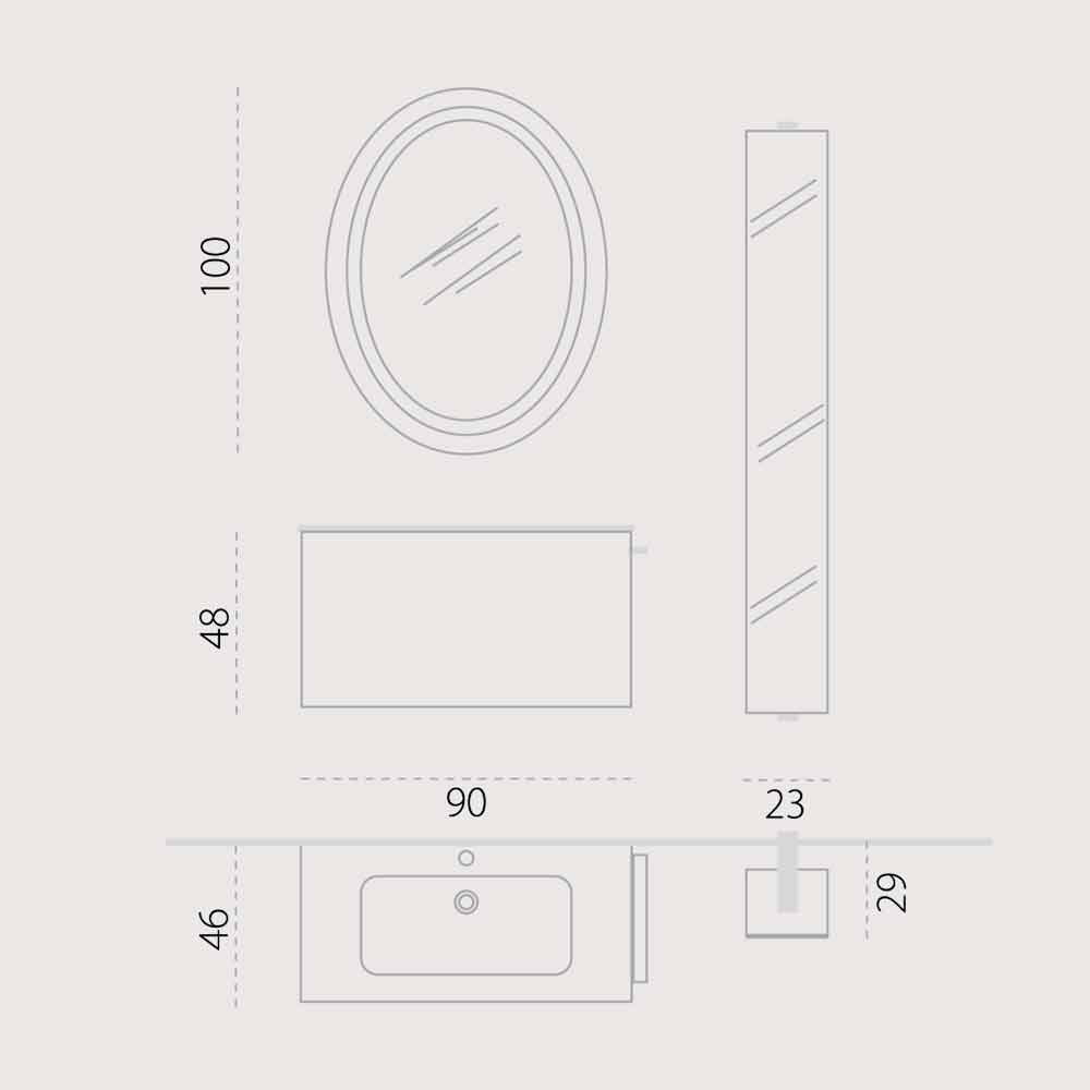 - Een aanrechtbodem in mat grijs gemoffeld mdf met handvat in chromen afwerking; L90xH48xP46 cm;