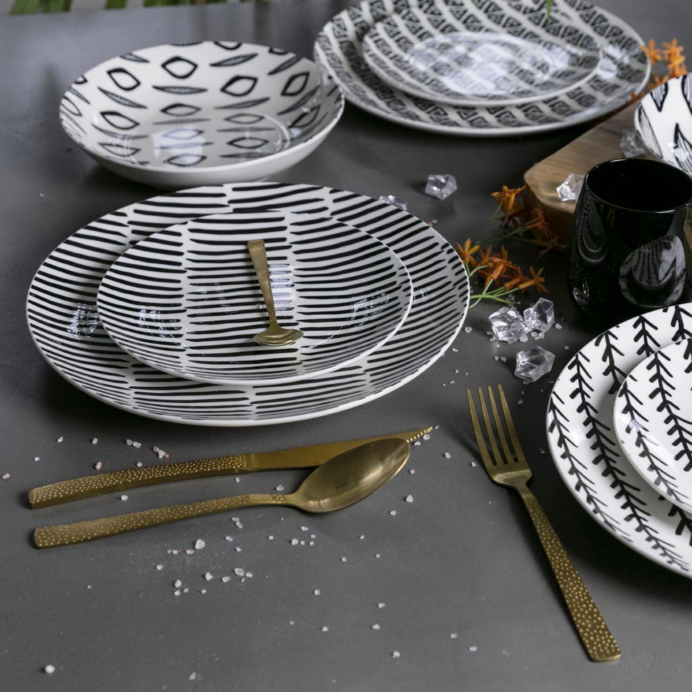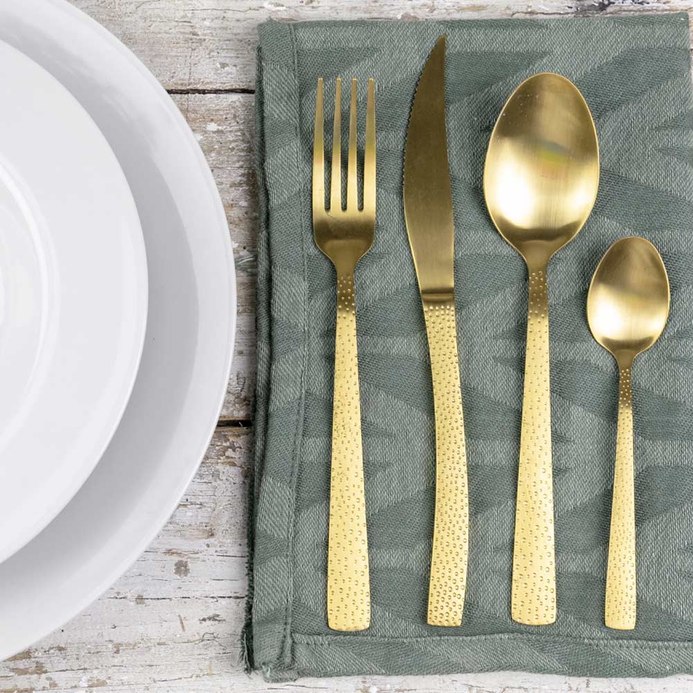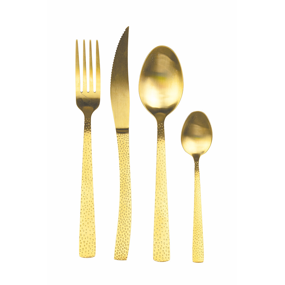 - De set bestaat uit 6 theelepels, 6 lepels, 6 vorken, 6 messen.