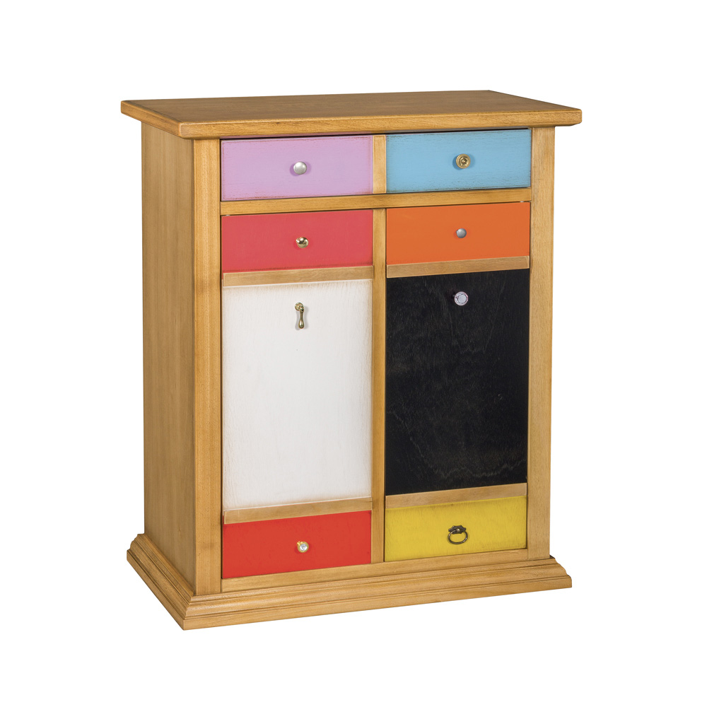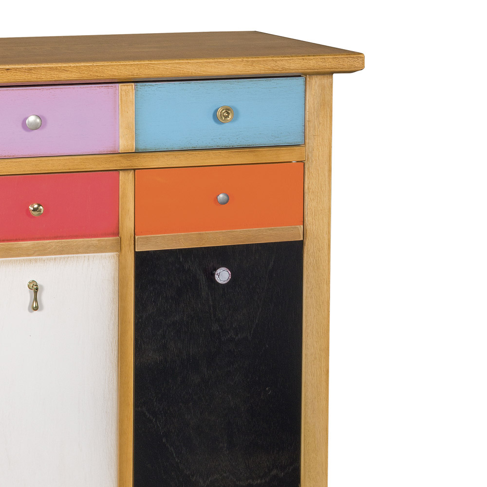 Made in Italy. Vreugde en speelsheid zijn de kenmerken die dit element beschrijven met sterke heldere kleuren en de bijzondere vormen van de handgrepen. Een originele herinterpretatie van een meubelstuk met grote