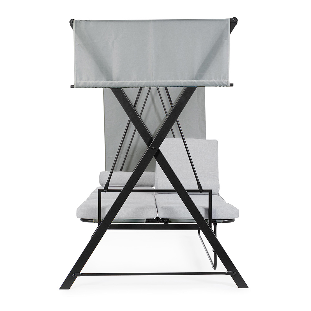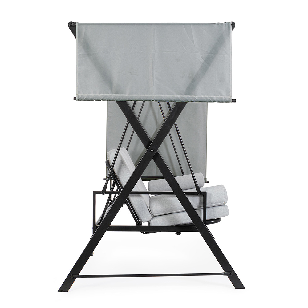 Deze tuinschommel is een oase van rust en ontspanning, ontworpen om elke buitenruimte te verrijken met zijn elegante en comfortabele ontwerp . De solide geverfde metalen structuur zorgt niet alleen voor stabiliteit, maar ook voor een sterke en eigentijdse esthetiek. De zachte en uitnodigende kussens beloven urenlang comfort, perfect om jezelf onder te dompelen in een spannend boek of te genieten van een heerlijk dutje in de schaduw.