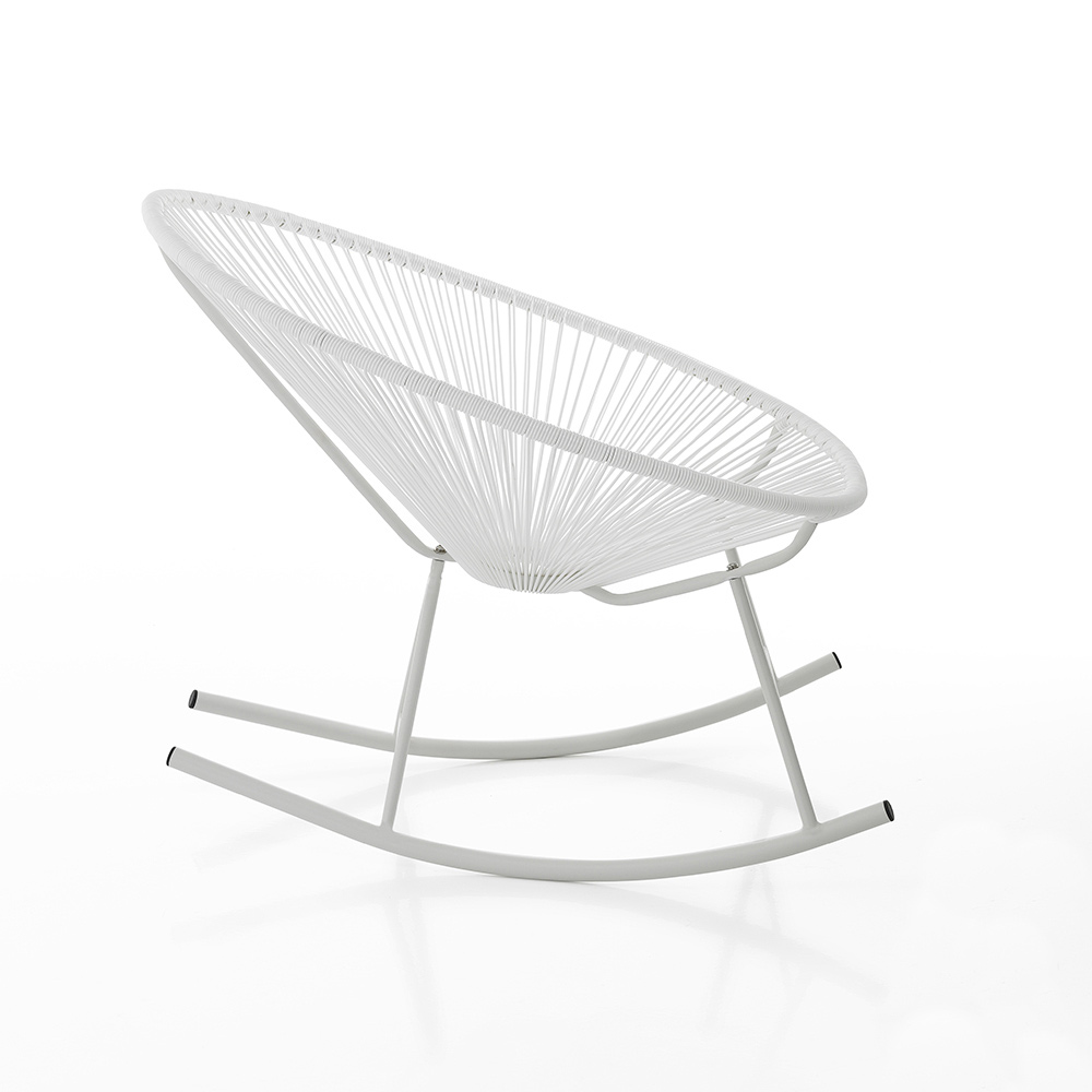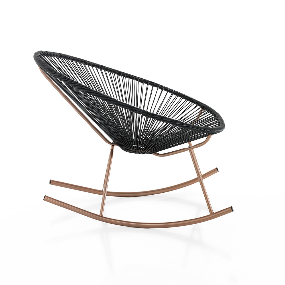 Schommelfauteuil voor binnen en buiten van metaal en polyrotan