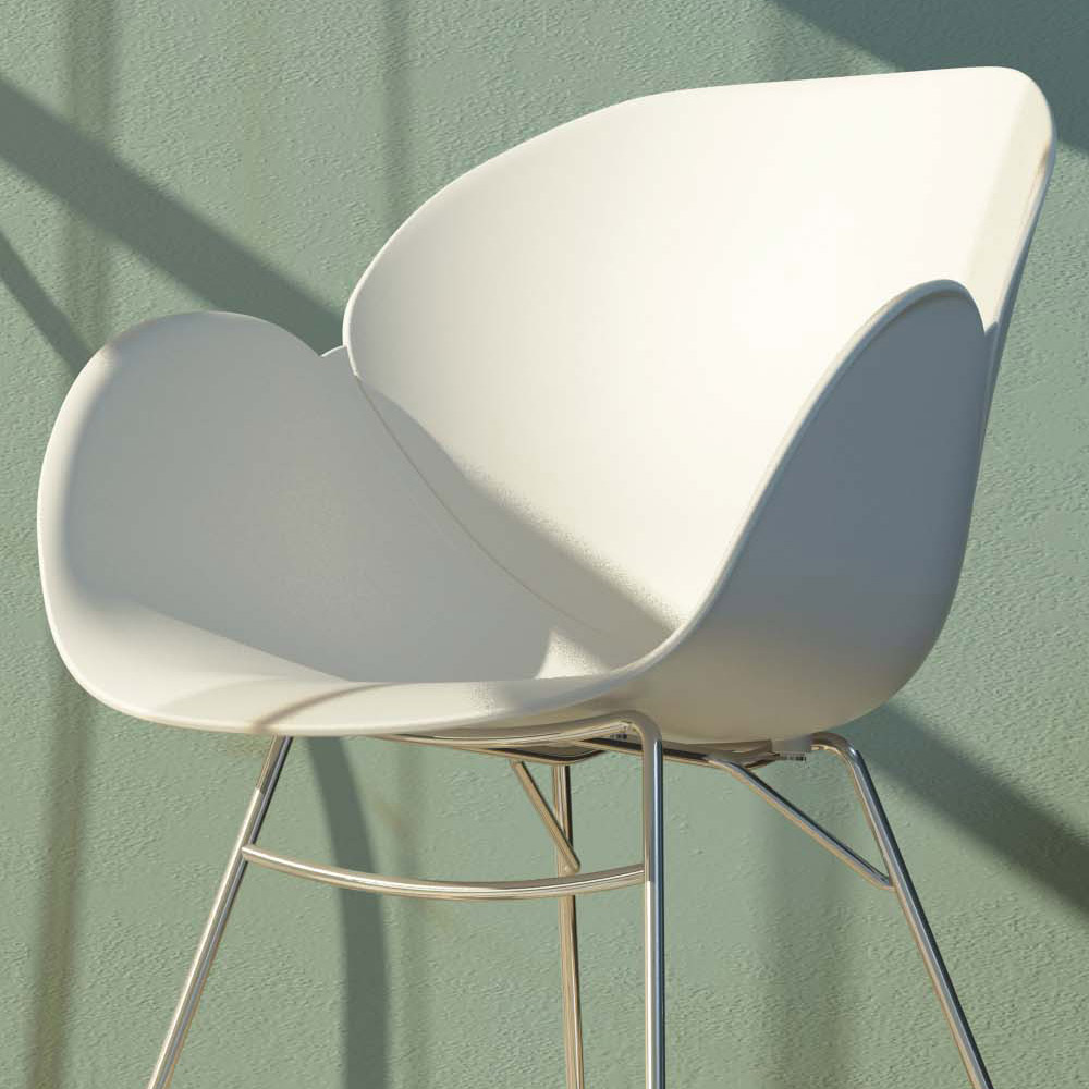 Schommelstoel voor woonkamer bestaande uit een verchroomde metalen structuur en een witte polypropyleen schaal. Een origineel meubelstuk met een exclusieve esthetiek , ideaal om uw woonruimte te vervolledigen met persoonlijkheid en een innovatief tintje . De bijzondere ronde vorm van de schaal is omhullend en comfortabel en biedt zo een uitnodigende zit en maximaal comfort samen met een verfijnd en creatief ontwerp .