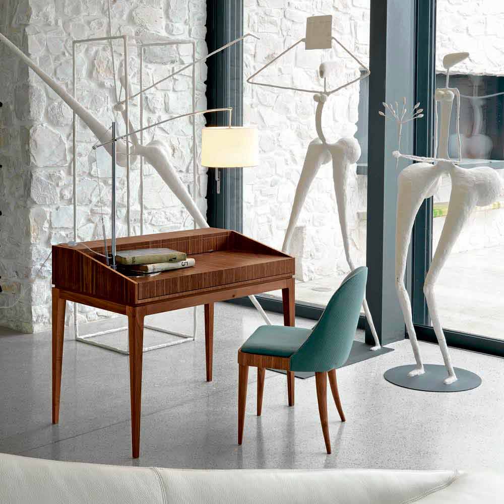elegant bureau in essentie van natuurlijke noten of walnoten natuur grijstinten, waarbij de stilistische uitdrukking van het bedrijf en de vaardigheid waarmee hij dit meubel en design is gemaakt in elke afwerking verbergt.