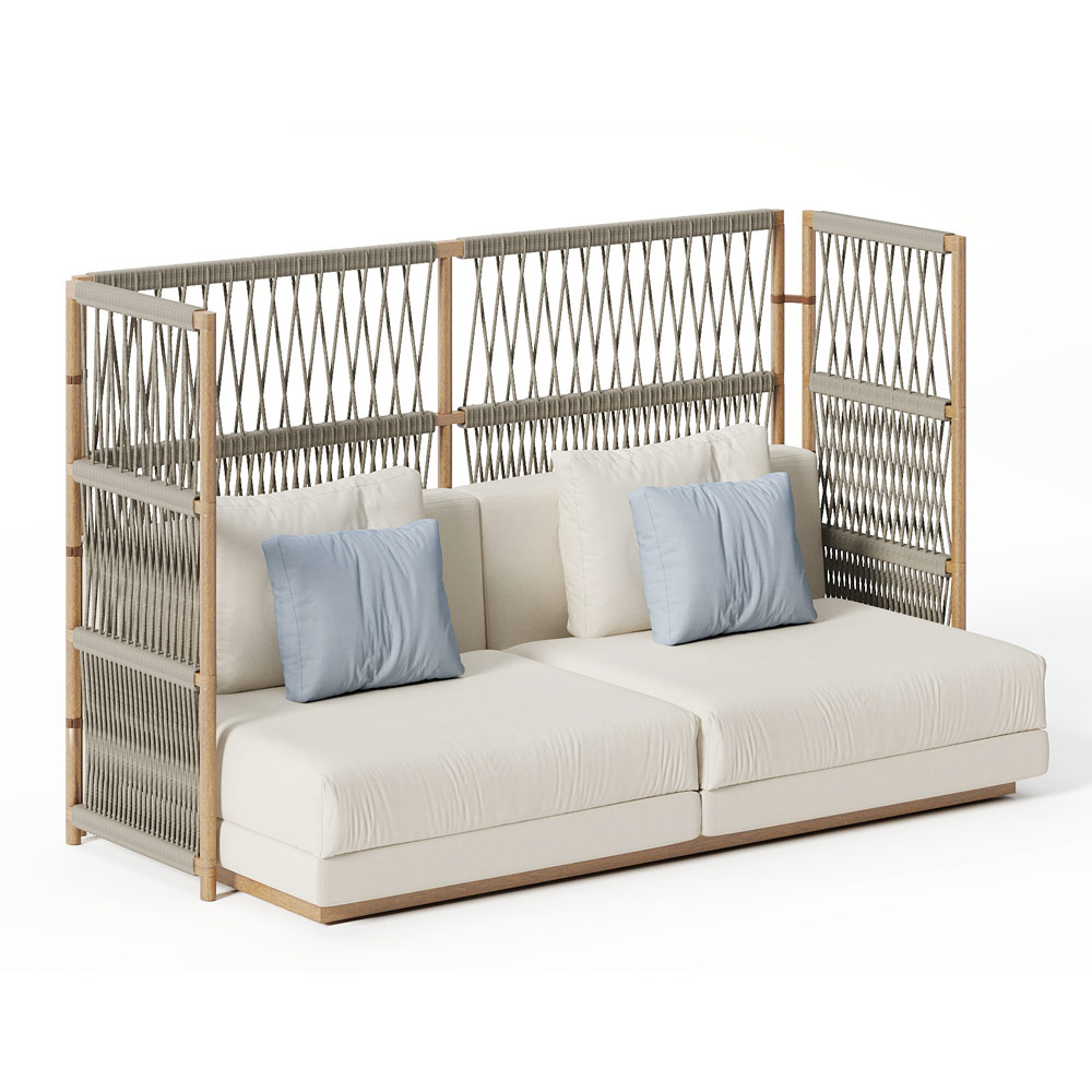 elegantie en verfijning in elke omgeving waarin het wordt geplaatst. De iroko-houtstructuur herinnert dankzij het weven en de decoratie aan de