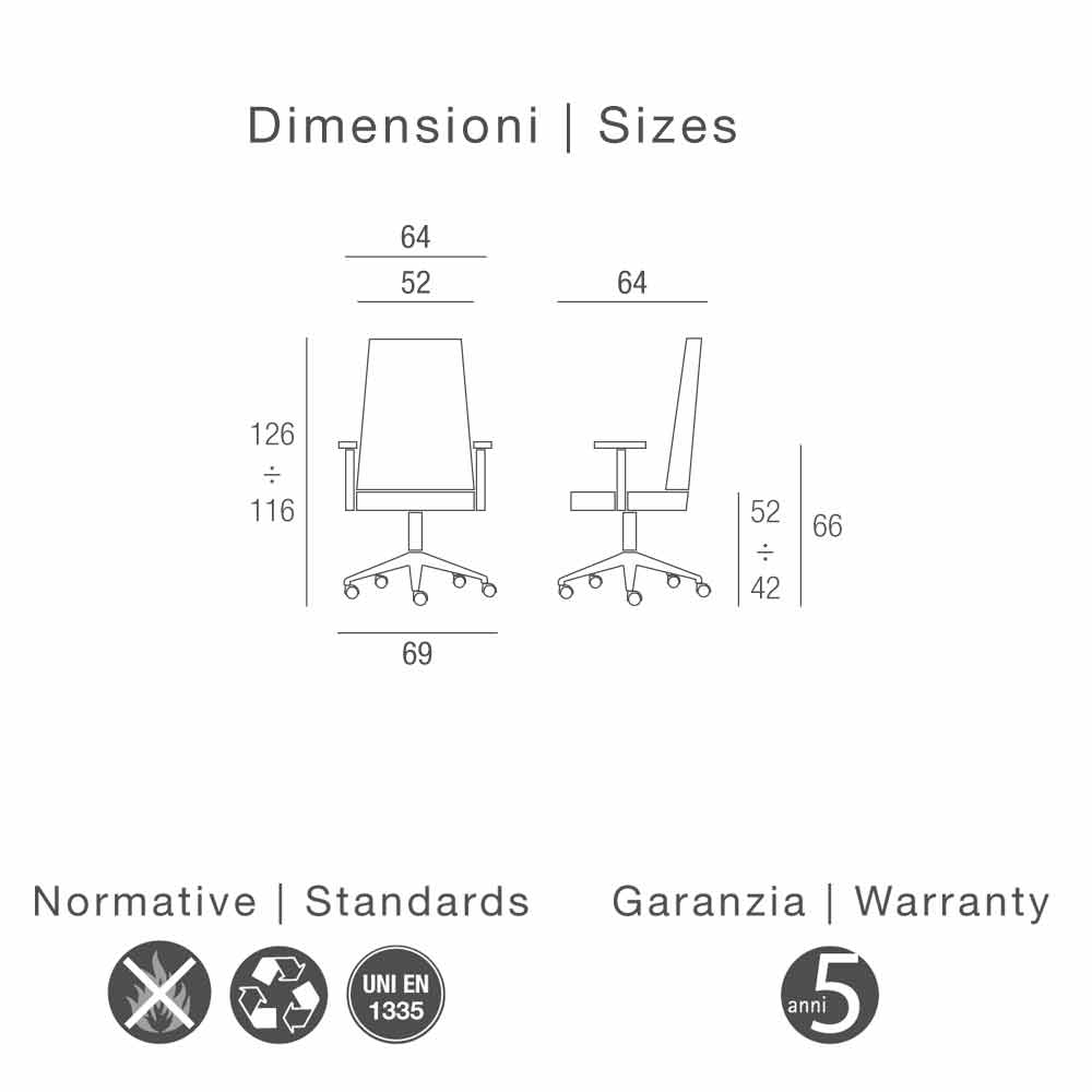 Debora is een Executive bureaustoel, met een modern design, gemaakt in Italië.