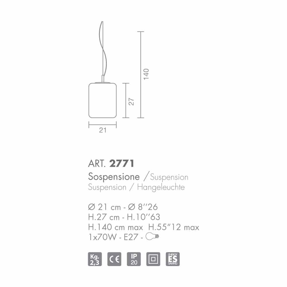 Selene Domino hanglamp geblazen Ø21 H 27/140 cm glas, gemaakt in Italië