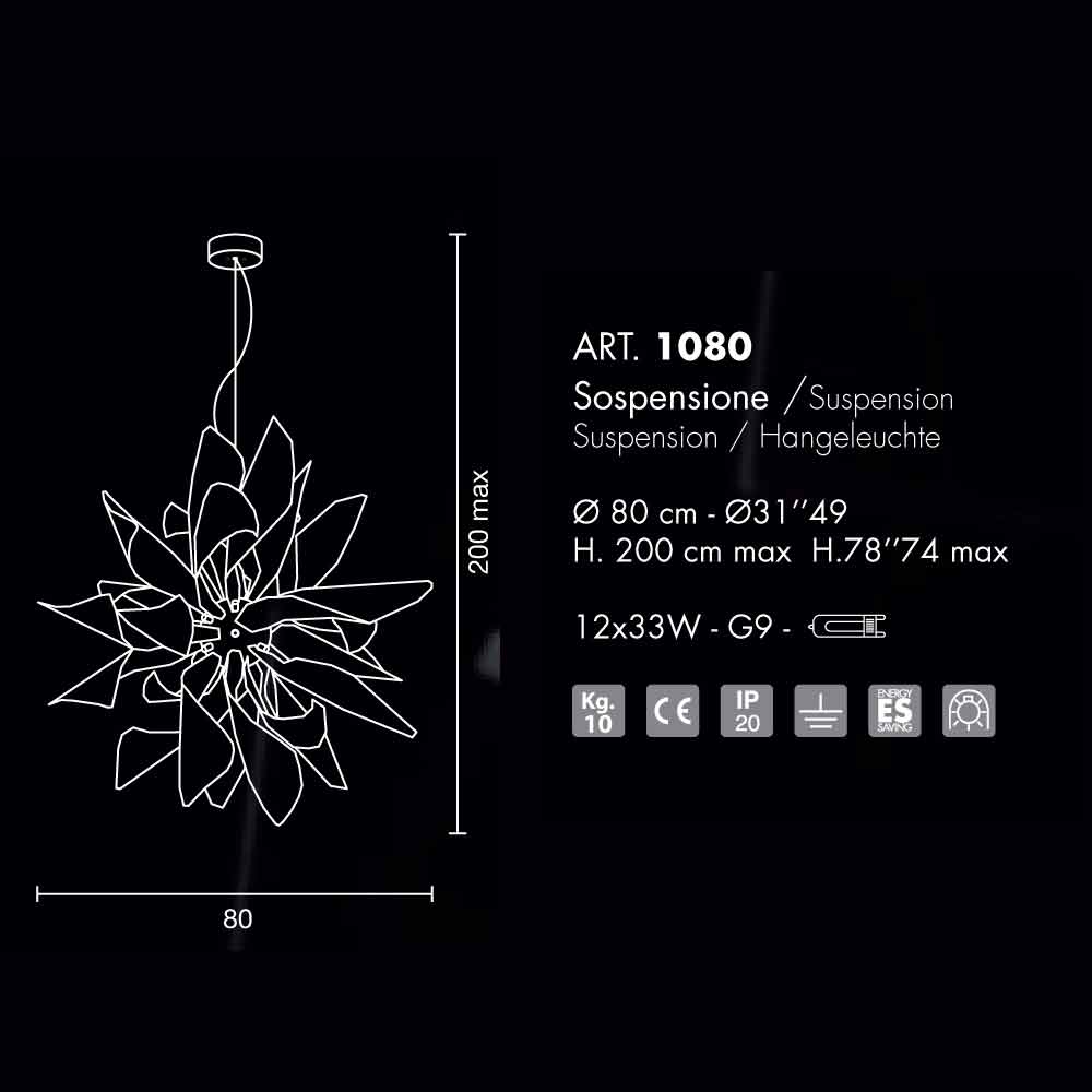 Ginger is een verzameling van belangrijke dimensies, in staat om een omgeving te verrijken met de aanwezigheid van zijn vele bands die dansen in de lucht. Ondanks dat geheel uit metaal, de aanwezigheid van vrije lampen zorgt voor een uitstekende heldere resultaat en is ontworpen voor het 'gebruik van 12 33W lampen - G9.
