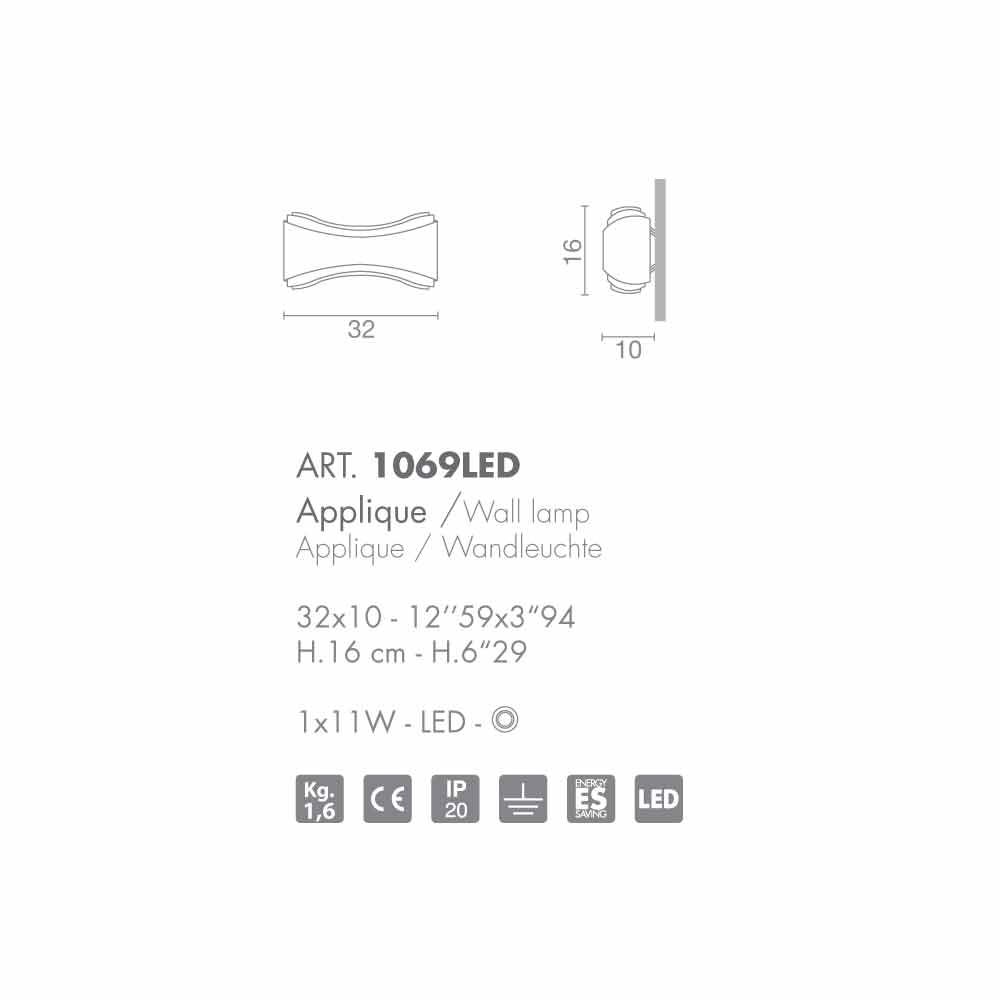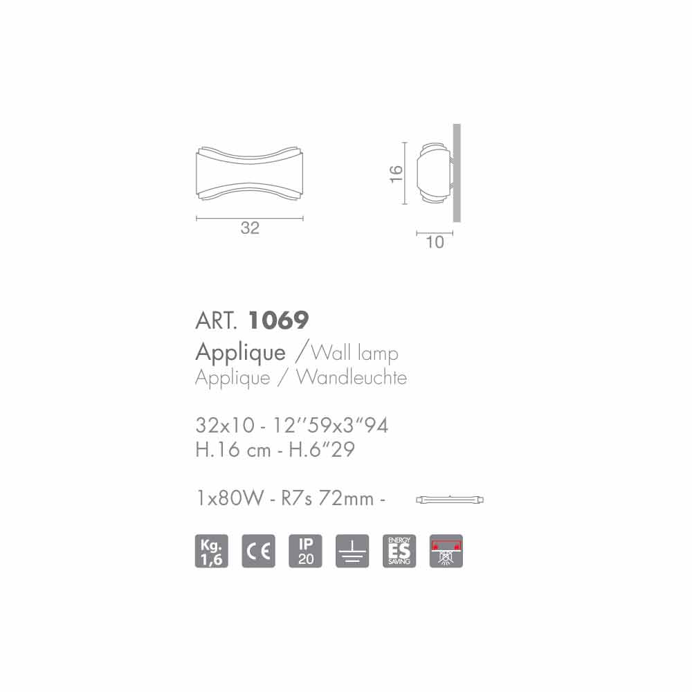 Selene Ionica applique 32x10 H16cm staal en glas gemaakt in Italië